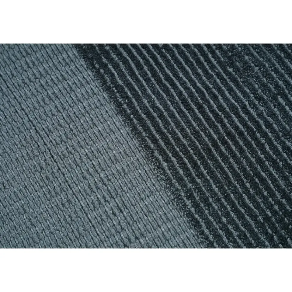 Dit vloerkleed heeft een diepzwarte kleur met subtiele glans, wat zorgt voor een verfijnde en moderne uitstraling. De strepen in verschillende texturen en de franjes aan de zijkanten geven het kleed een eigentijdse en speelse look, waardoor het een blikvanger is in elke ruimte. Viscose is bekend om zijn zijdezachte structuur en biedt een prachtig luxe gevoel onder de voeten.