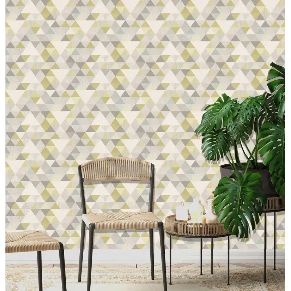 Retro behang met driehoek motief.
