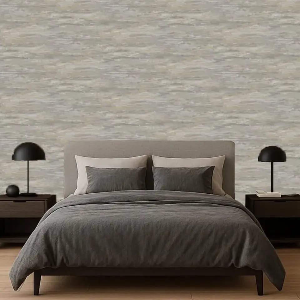 Het Arcadia-Kaleid Texture vliesbehang biedt een eigentijdse en verfijnde uitstraling met zijn mix van grijze en goudkleurige tinten. Dit abstracte ontwerp, geïnspireerd door natuurlijke texturen, creërt een subtiele gelaagdheid op uw muren die diepte en warmte toevoegt aan elke ruimte. De combinatie van koele grijstinten met warme gouden accenten zorgt voor een perfect gebalanceerde en serene sfeer, ideaal voor woonkamers, slaapkamers of kantoorruimtes. Het vliesmateriaal maakt het eenvoudig om dit behang aan te brengen en te verwijderen, waardoor het een praktische keuze is voor een snelle en stijlvolle vernieuwing van uw interieur.
