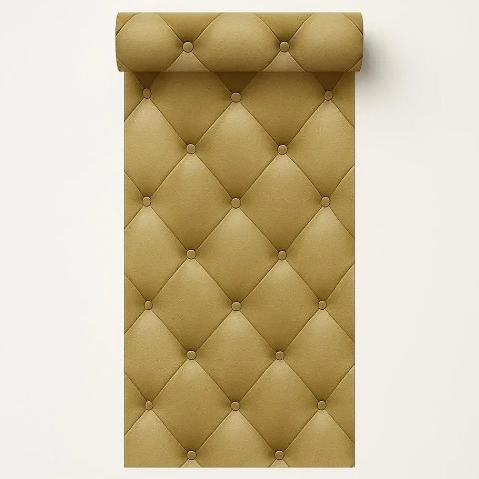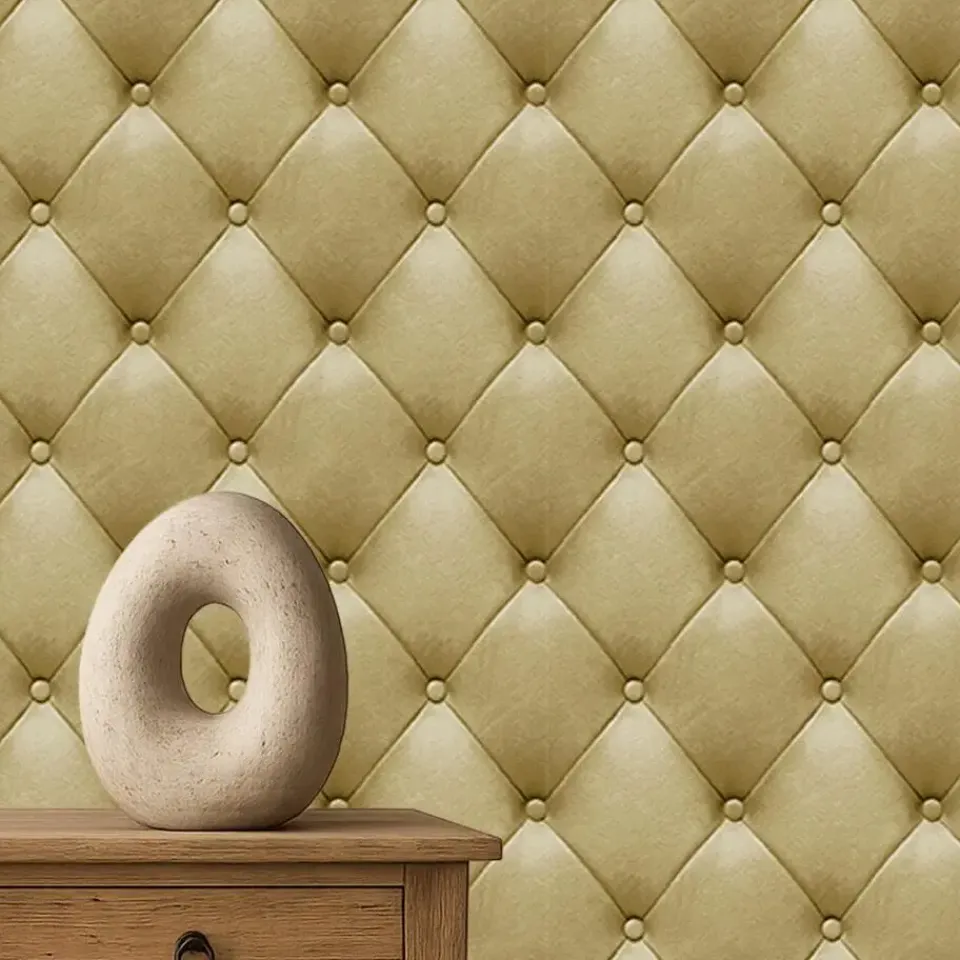 Het Artifice-vliesbehang met kapiton in oker brengt een gevoel van luxe en comfort in elke ruimte. Het ontwerp imiteert een gewatteerde, gestoffeerde wand met een warme okergele tint, wat zorgt voor een rijke en uitnodigende uitstraling. Dit behang is perfect voor het creëren van een stijlvolle sfeer in bijvoorbeeld een slaapkamer, woonkamer of een chique kantoor. Het vliesbehang is eenvoudig aan te brengen en biedt een naadloze afwerking, terwijl het duurzame materiaal zorgt voor een lange levensduur. Voeg een vleugje elegantie en warmte toe aan je interieur met dit unieke behangontwerp.
