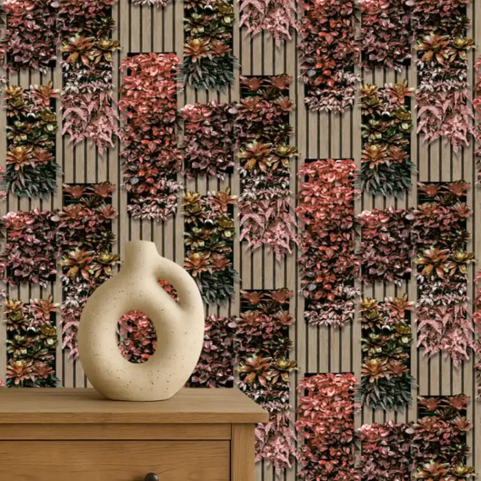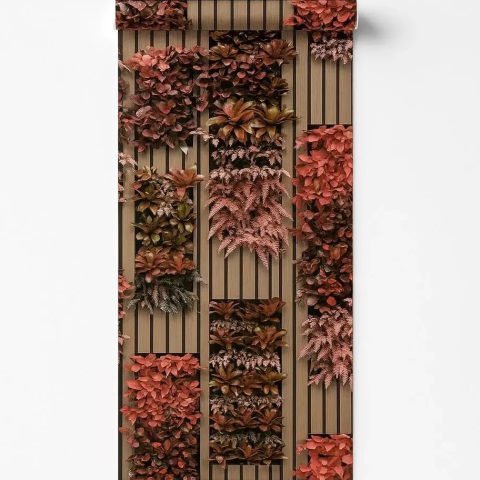 Het Artifice-vliesbehang met een motief van planken en planten in beige en bruintinten geeft je interieur een warme, natuurlijke uitstraling. Dit behang combineert de rustieke charme van houten planken met de levendige textuur van diverse bruinrode planten. Het patroon creërt een dynamisch en toch rustgevend effect, ideaal voor woonruimtes, slaapkamers of kantoren waar je een vleugje natuur wilt toevoegen. Dankzij het duurzame vliesmateriaal is dit behang eenvoudig aan te brengen en zorgt het voor een langdurig mooi resultaat. Perfect om een unieke, organische sfeer in je interieur te brengen.
