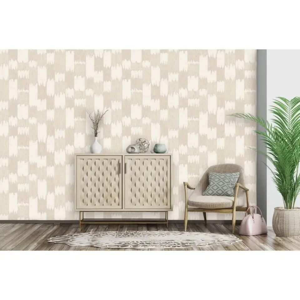 Renaissance Textured Loom Cream/Beige is een stijlvol vliesbehang met een subtiel, abstract geweven dessin in zachte Crème- en beigetonen. Het fijne relïef imiteert handgeweven linnentextiel en voegt tactiele charme en diepte toe aan elke wand. Gemaakt van hoogwaardig non-woven materiaal, is het scheur- en kreukbestendig, eenvoudig aan te brengen (drop-out) en droog te verwijderen zonder weken. Perfect voor een rustige woonkamer, elegante slaapkamer of stijlvolle hal. Combineer met naturel houtaccenten, linnen stoffen en matte metalen accessoires voor een warme, verfijnde en uitnodigende sfeer.