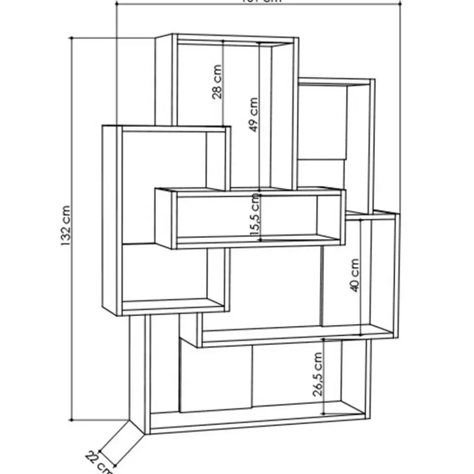 - 101cm x 22cm x 132cm (lengte x breedte/diepte x hoogte)