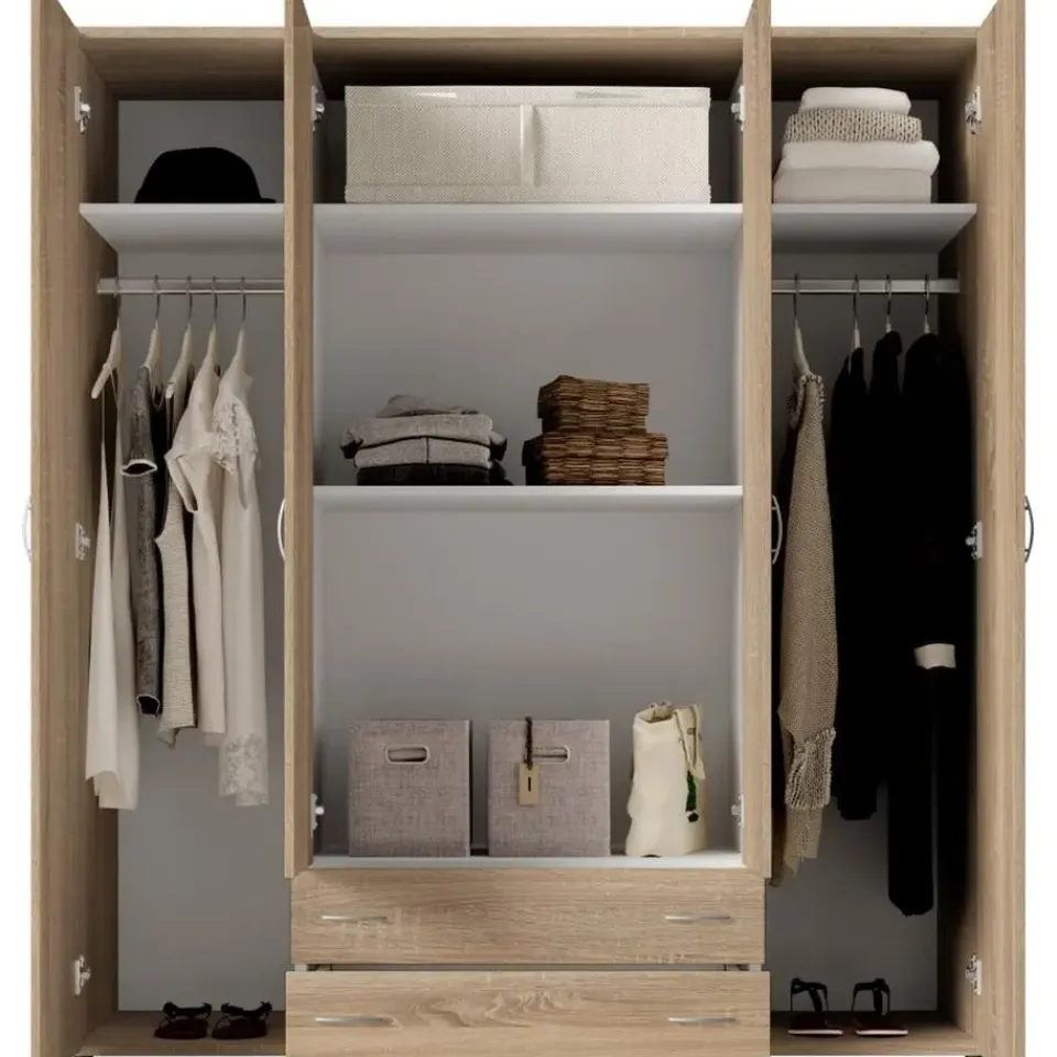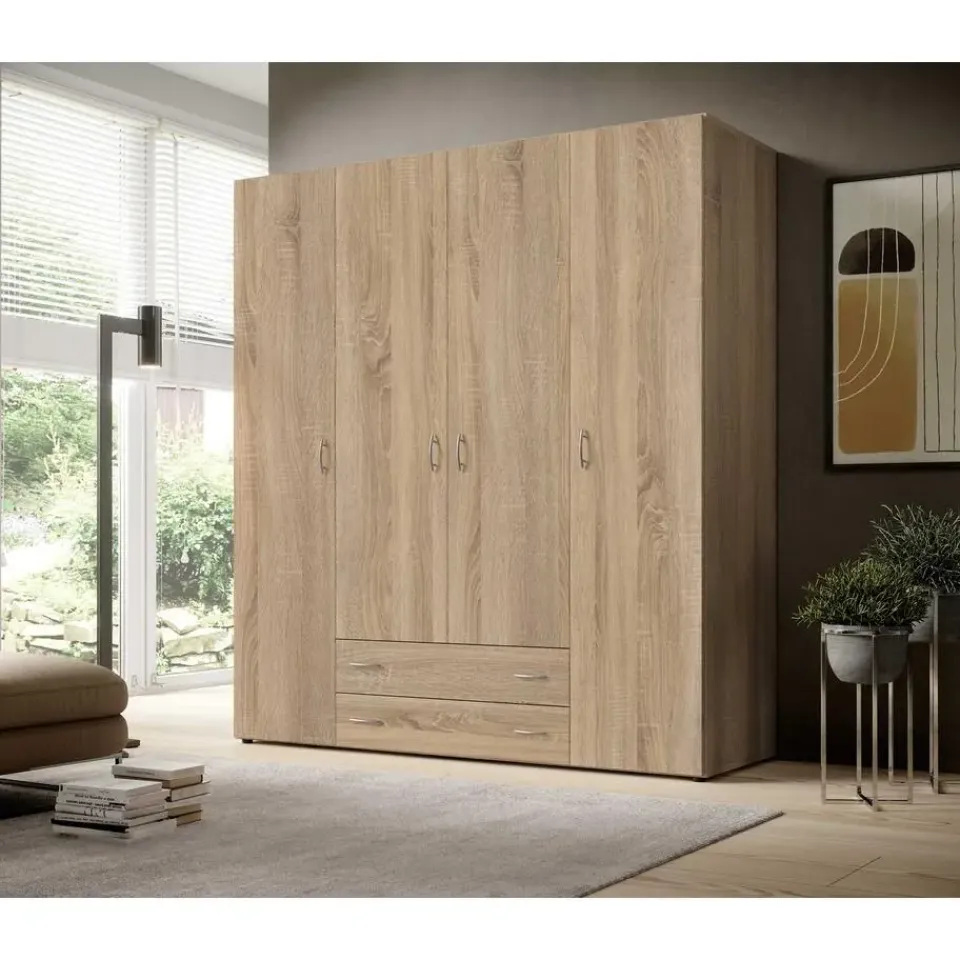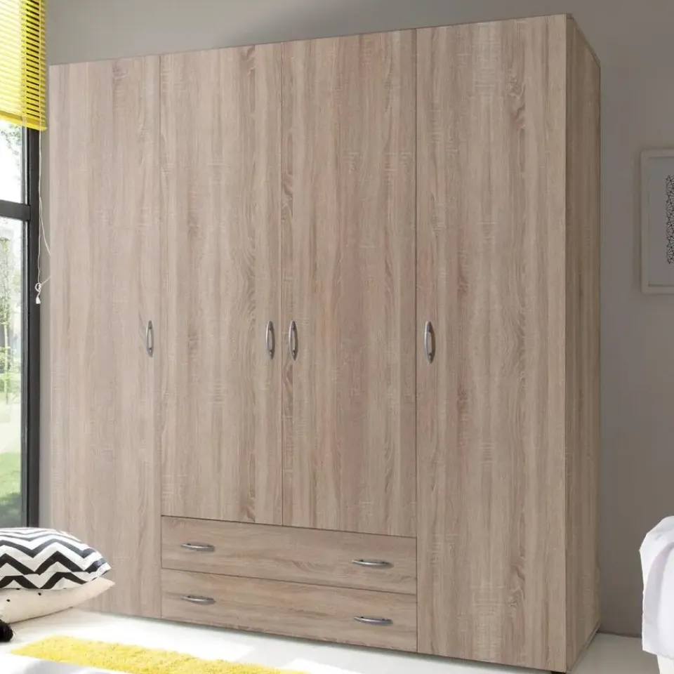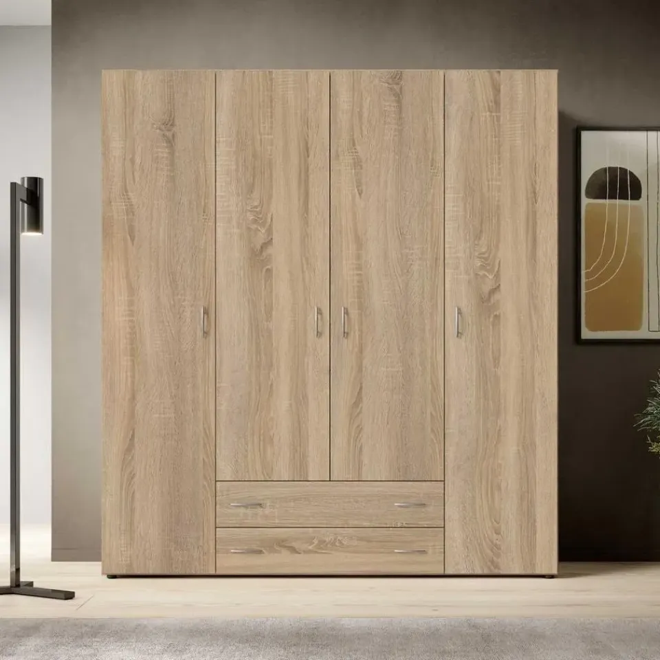 Het Wotan Oak-design voegt een vleugje natuurlijke elegantie toe aan de kamer, waardoor een warme en uitnodigende sfeer ontstaat. De neutrale kleur van het eikenhout maakt het gemakkelijk om de kledingkast te combineren met verschillende interieurstijlen.