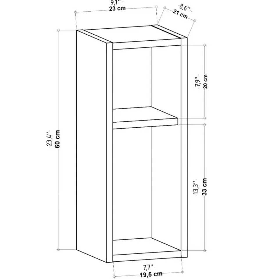 Met een breedte van 23,2 cm, diepte van 22 cm en hoogte van 59,6 cm is ons nachtkastje ontworpen om naadloos in elke slaapkamer te passen. Het compacte formaat maakt het ideaal voor kleine ruimtes, terwijl het toch voldoende opbergruimte biedt voor je benodigdheden.