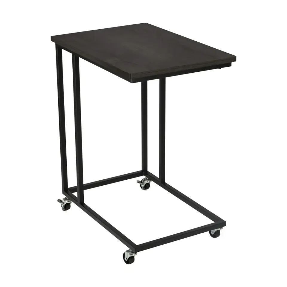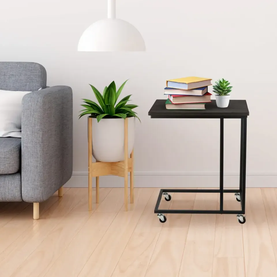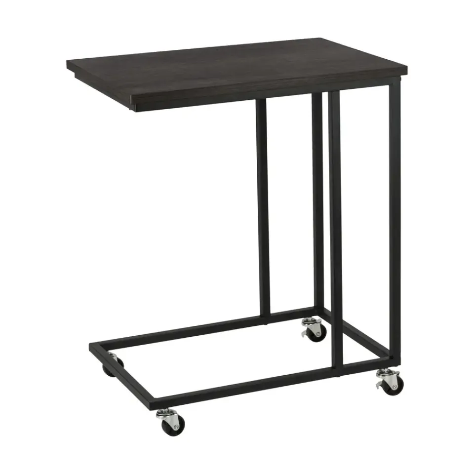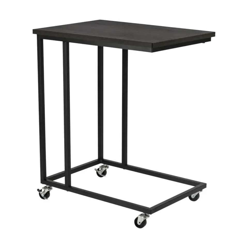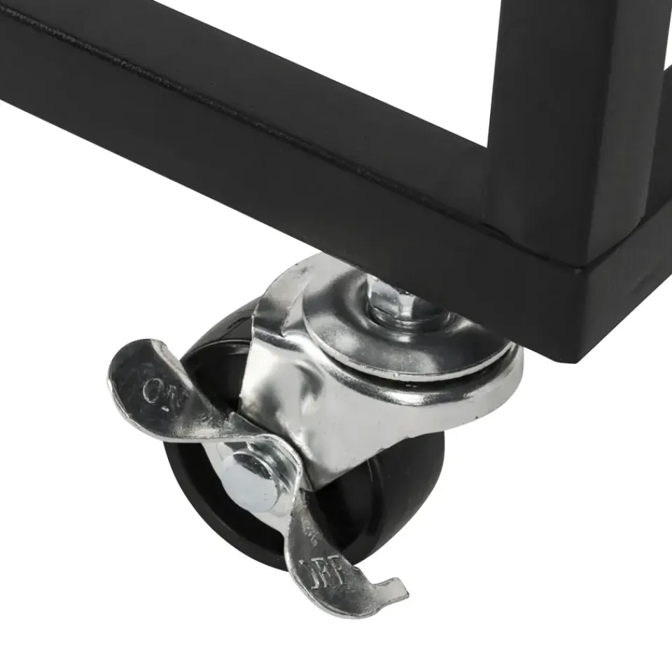 De ERRO bijzettafel zwart wordt geleverd met wieltjes én met verstelbare voetjes. Zo kun je zelf kiezen wat voor jou het fijnst werkt. Ze zijn gemakkelijk te monteren dus je kunt op een later moment ook nog wisselen. Het metalen frame heeft een mooie mat zwarte poedercoating en de spaanplaat plank heeft een hout dessin.