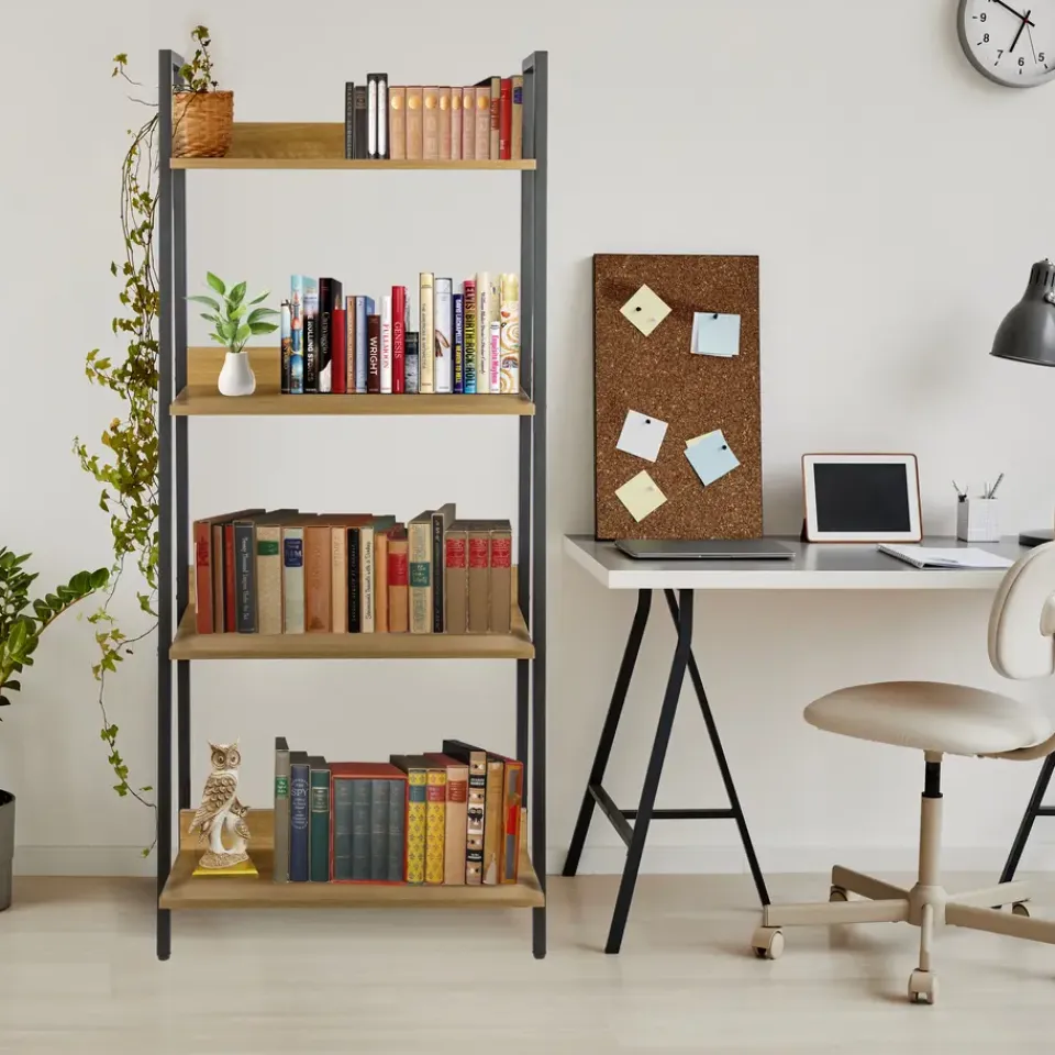 Een boekenkast voor je collectie boeken, decoratie of plantjes: het ERRO boekenrek is veelzijdig in gebruik en dat maakt hem perfect voor iedere woning. Dit wandrek is voorzien van stevige planken van spaanplaat met een houtdessin en een zwart metalen frame. Met een breedte van 60 cm, diepte van 30 cm en hoogte van 140 cm is dit boekenrek ideaal om je favoriete boeken, planten of decoratie op uit te stallen. Dankzij de open schappen biedt de kast veel opbergruimte.