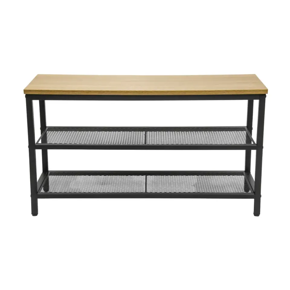 Het ontwerp van het ERRO schoenenrek zorgt voor een stoere uitstraling die perfect past in elk interieur. De combinatie van hoogwaardig mat zwart metaal en houten accenten geeft het schoenenrek een duurzame constructie.