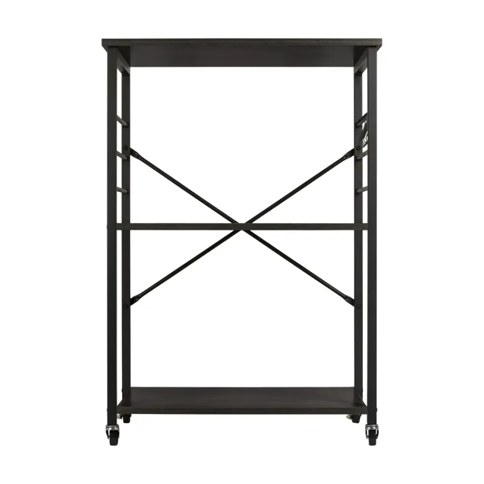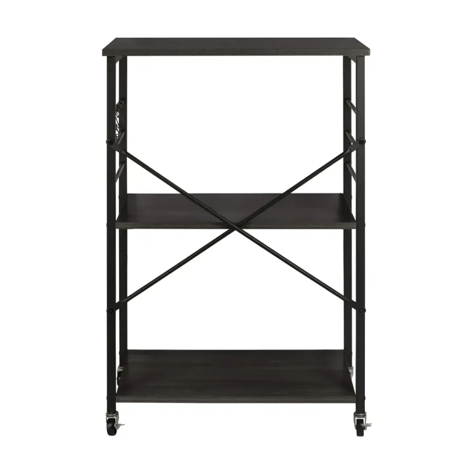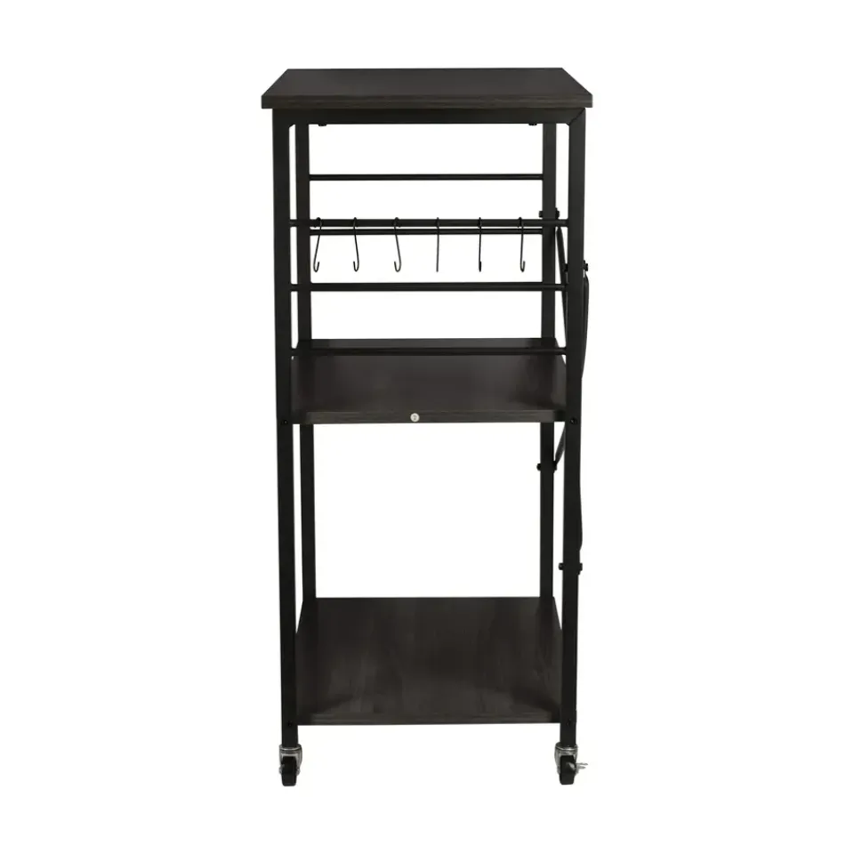 De ERRO keukentrolley is een handige en stijlvolle opbergoplossing voor elke keuken. Met drie ruime planken biedt deze serveerwagen voldoende opbergruimte voor keukengerei, ingrediënten en zelfs keukenapparaten. Dankzij de wieltjes met remfunctie verplaats je de trolley moeiteloos door de keuken, of gebruik je hem als vast keukenrek op wielen. De serveerwagen heeft een zwart metalen frame en stevige planken van spaanplaat.