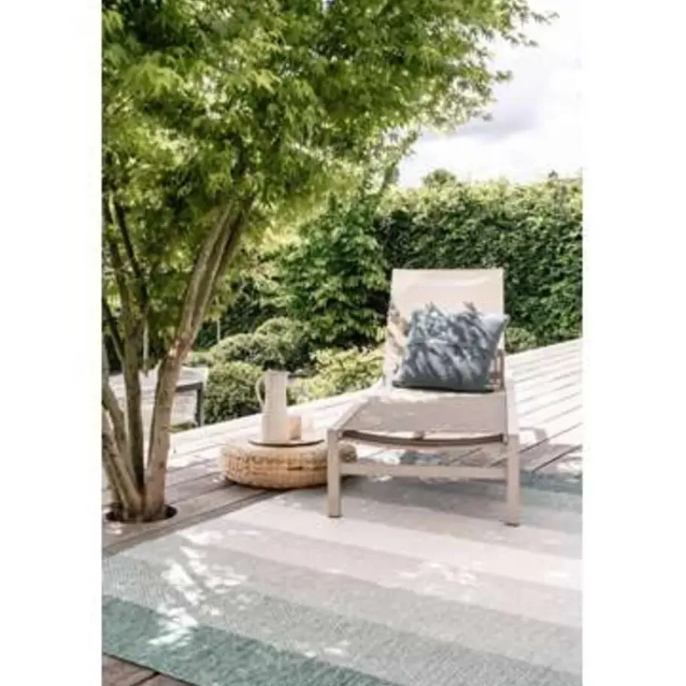 Wat leuk is aan de buitenvloerkleden van Eva Interior is dat ze dubbelzijdig te gebruiken zijn, in een handomdraai heb jij dus een totaal ander kleed met tegengestelde kleuren!