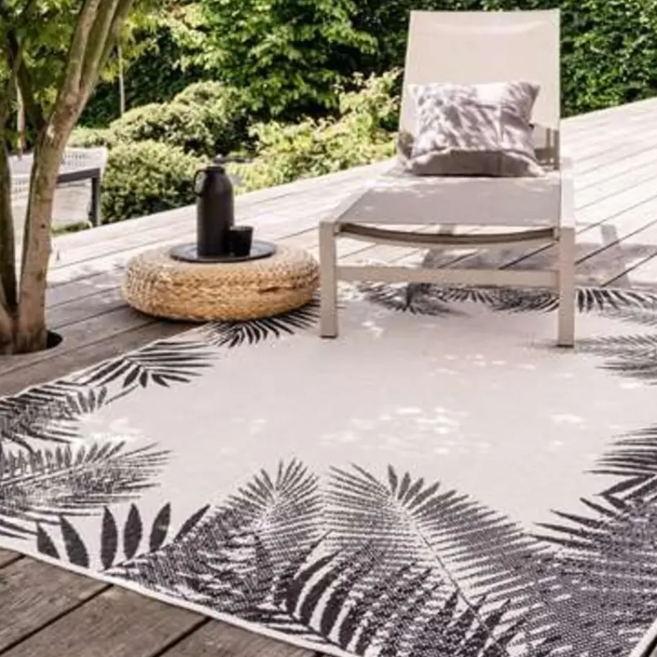 Dit Buiten Vloerkleed Leaf in de kleur zwart is gemaakt van het materiaal Polypropyleen. Het vloerkleed is geschikt voor binnen en buiten. Ook kun je beide kanten van het buiten vloerkleed gebruiken. Dit buiten vloerkleed maakt je tuin sfeervol, opgevuld en aantrekkelijk. Leg het buiten vloerkleed bijvoorbeeld bij je loungeset of eventuele buitenkeuken.