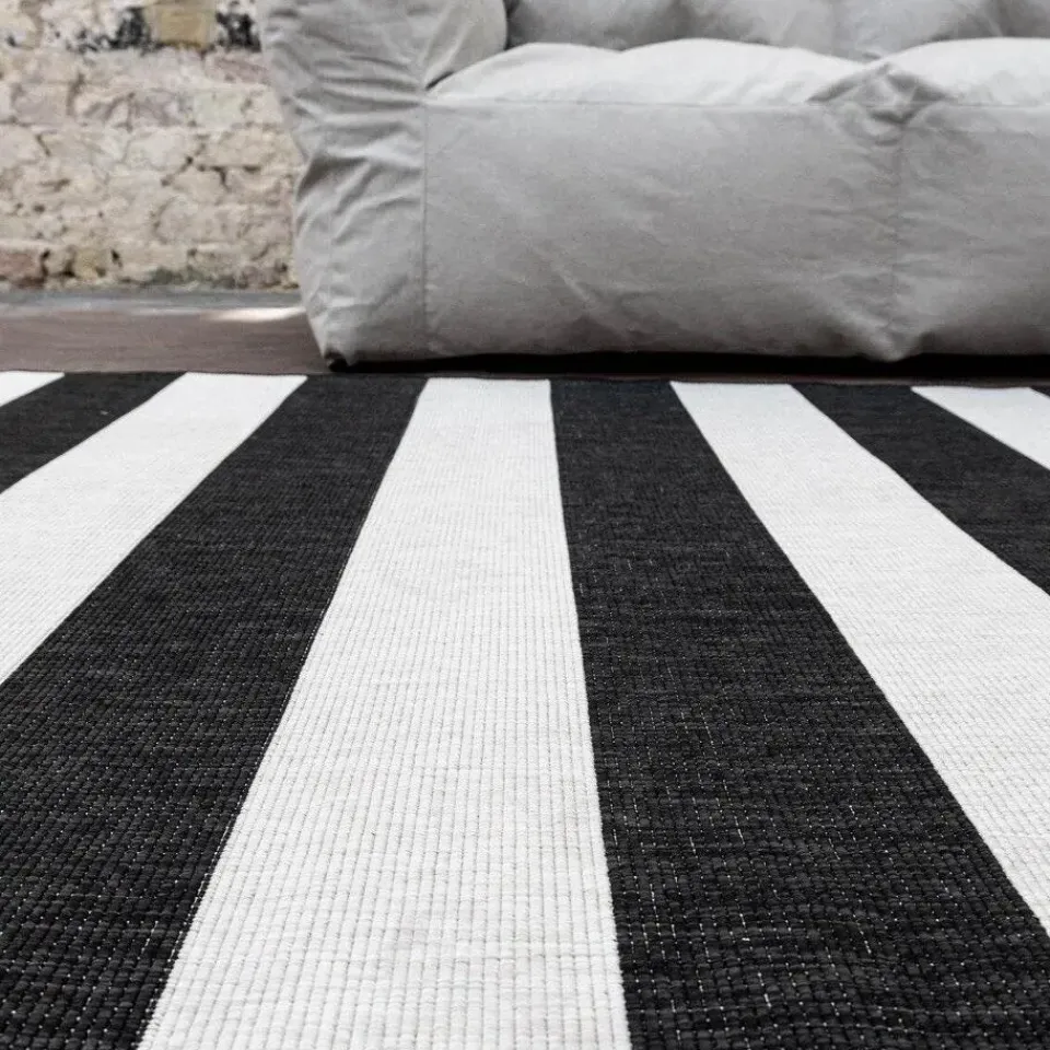 Breng een eigentijdse flair naar je buitenruimte met het Stripes buitenkleed. Dit stijlvolle kleed is voorzien van een klassiek streepjespatroon, waardoor het een moderne en speelse uitstraling krijgt. Verkrijgbaar in de kleuren grijs/wit, roest/wit en zwart/wit, past het perfect in verschillende buitenomgevingen, van minimalistisch tot juist wat warmer.