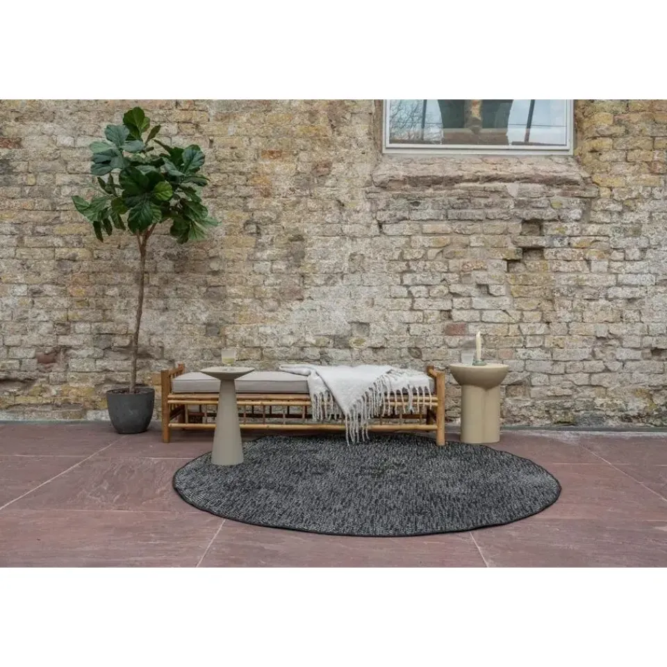 Kies de vorm die bij jouw ruimte past: rechthoekig, rond of ovaal, met afmetingen van 160×230 cm, 200×290 cm, 240×340 cm, 280×380 cm (rechthoekig), 200 cm en 240 cm (rond), of 160×230 cm, 200×290 cm, 240×340 cm (ovaal). Met een dikte van 10 mm voelt het kleed comfortabel aan en biedt het een zachte ondergrond. Dankzij de duurzame en weerbestendige materialen blijft het Dahl buitenkleed lang mooi en is het eenvoudig te onderhouden. Perfect voor een strakke en eigentijdse buitenomgeving!