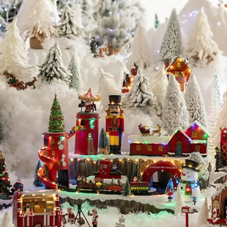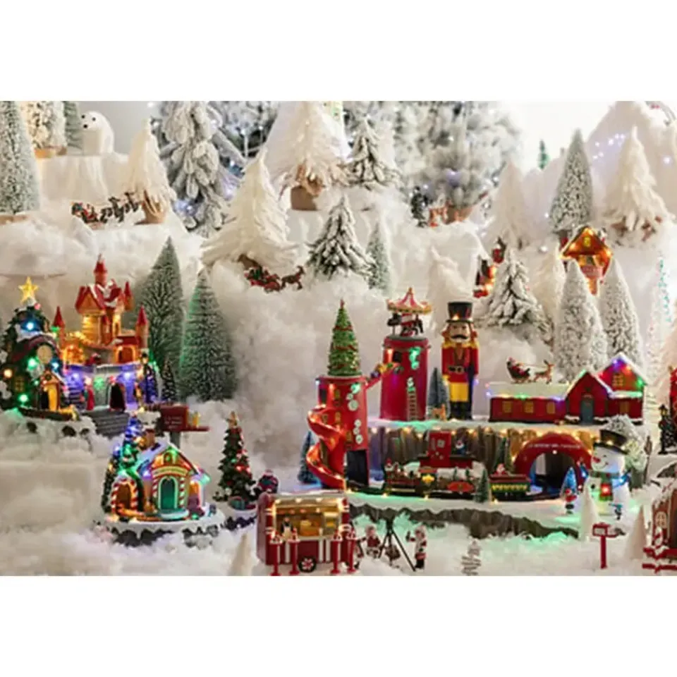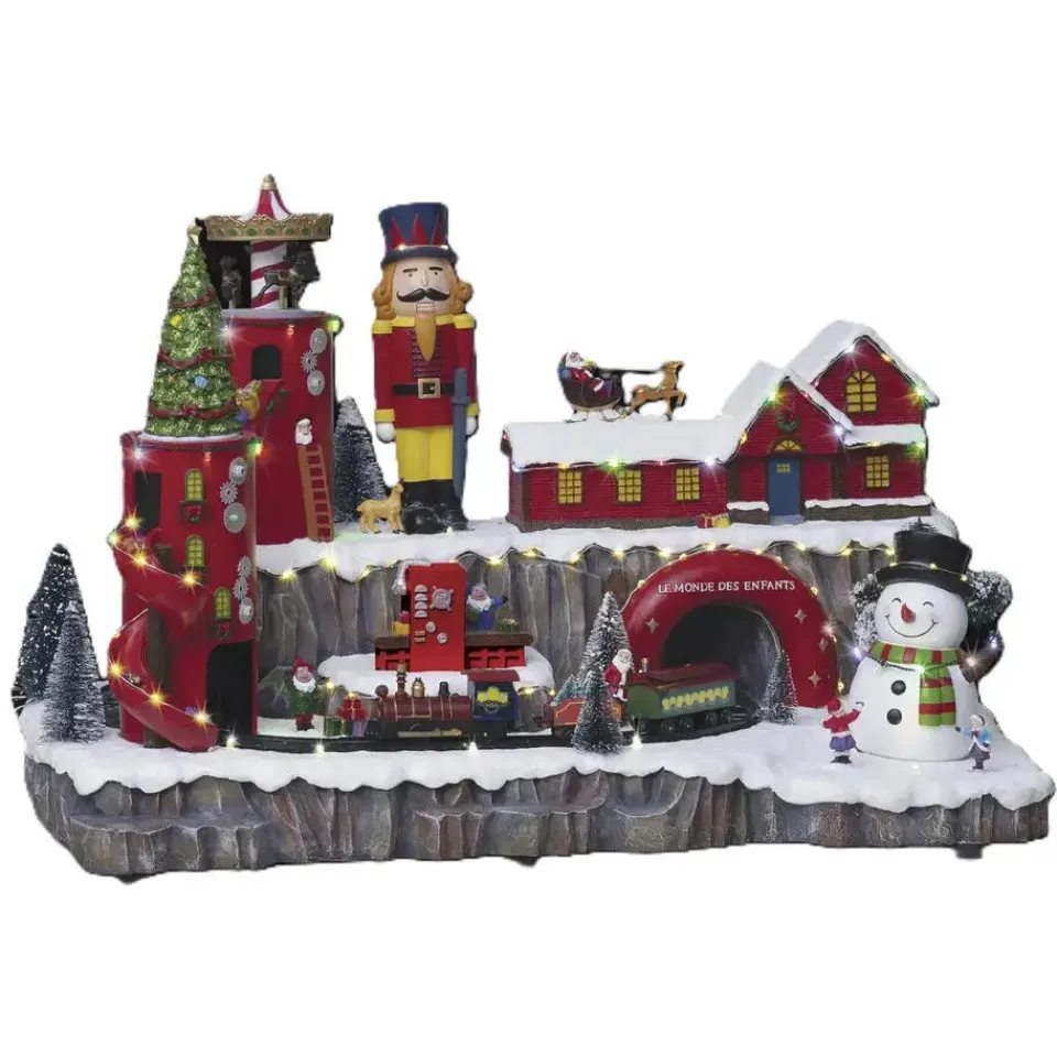 Haal de magie van de kerstman in huis met dit prachtige lichtgevende kerstdorp: Santa’s muzikale werkplaats. Dit gedetailleerde tafereel is voorzien van 75 LED-lampjes (warm wit en multicolor), speelse bewegende elementen en vrolijke kerstmuziek. Een echte blikvanger in je interieur en ideaal voor je kerstdorpcollectie.
