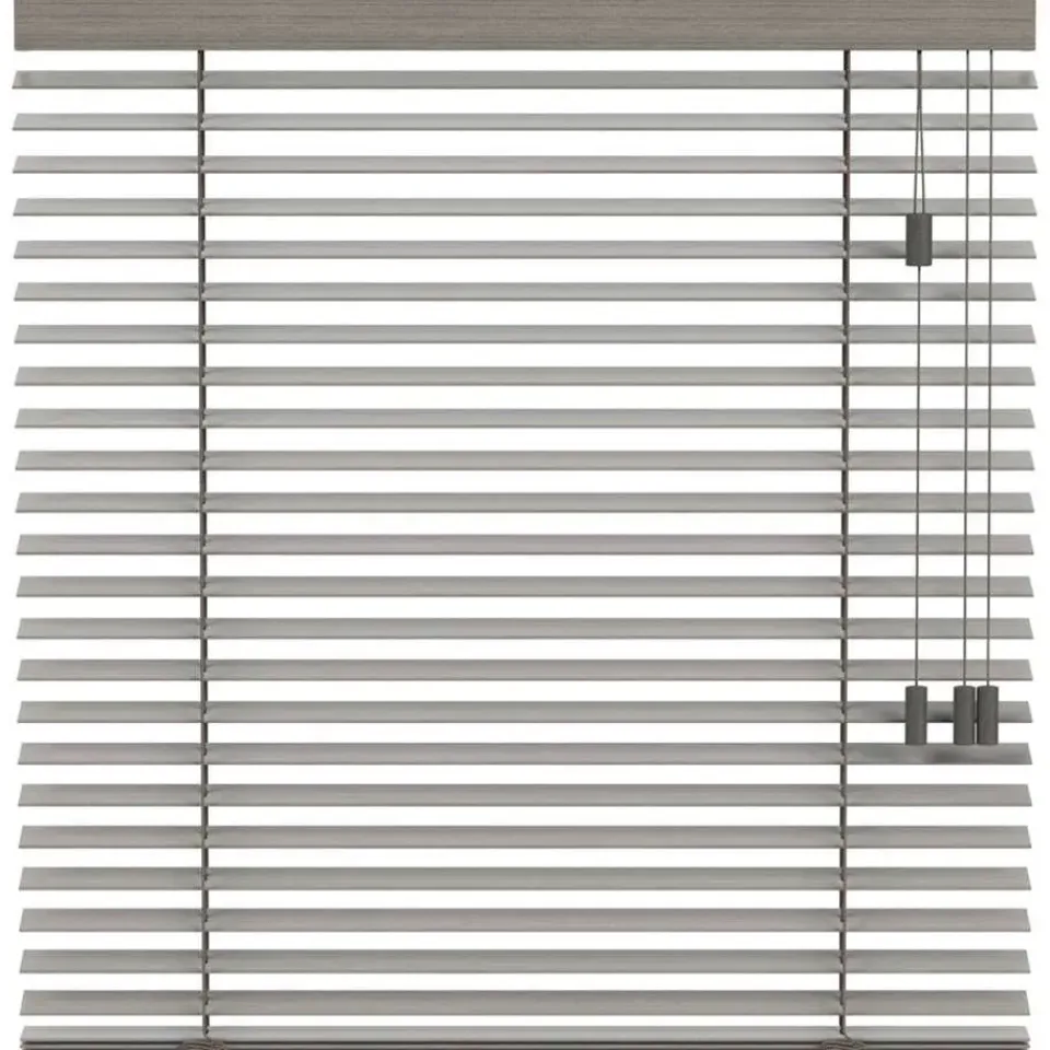 • PVC jaloezie: door zijn houtlook nauwelijks te onderscheiden van een houten jaloezie, is gemakkelijker schoon te maken en vochtbestendig.