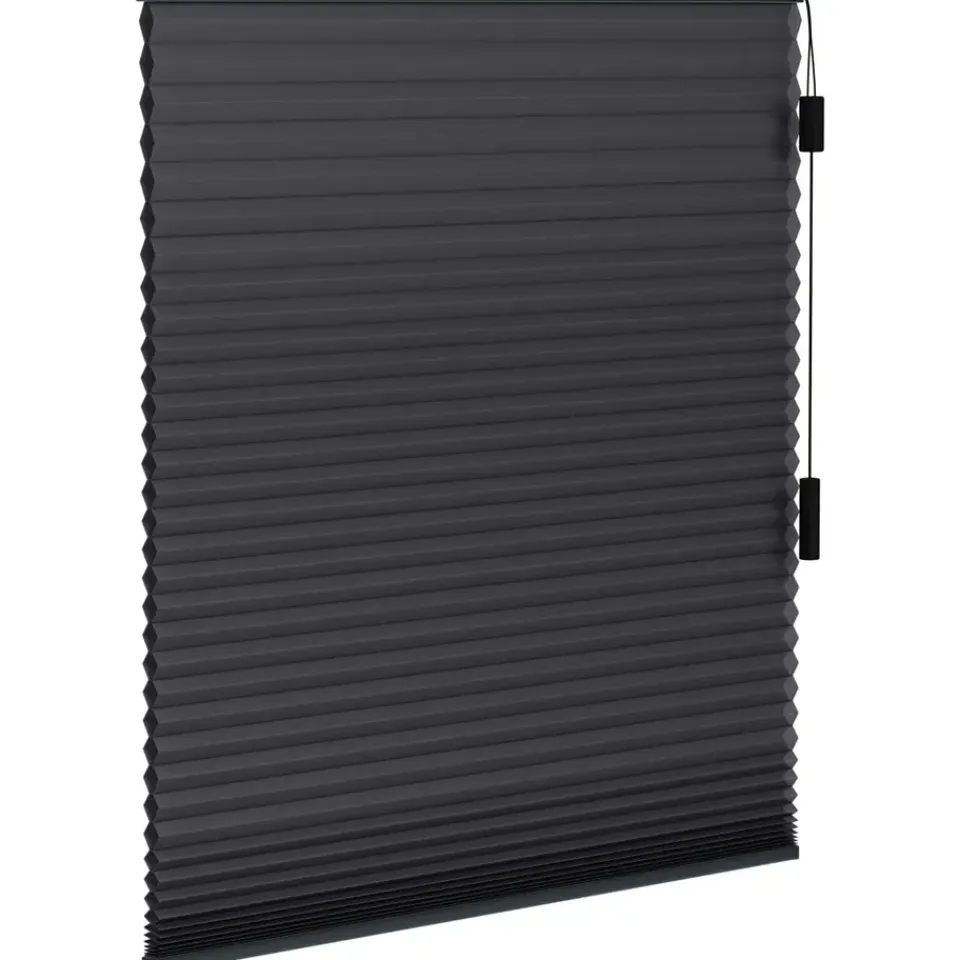 Dit mooie plisségordijn van Fenstr heeft een dubbele stof en is verduisterend. Dit maakt het plisségordijn zeer geschikt voor bijvoorbeeld de slaapkamer of kinderkamer. De stof is antraciet van kleur met een meekleurende achterkant, waardoor het plisségordijn er van buitenaf net zo mooi en sfeervol uitziet als binnen. In 5 eenvoudige stappen bepaal jij de afmetingen en afwerking, waardoor je verzekerd bent van een plisségordijn naar jouw smaak!