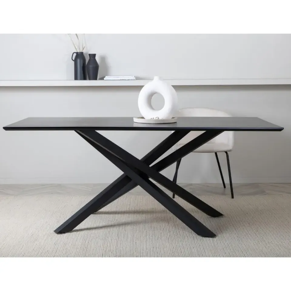 Materiaal: Het tafelblad van de Fjôrd Eettafel Piazza is gemaakt van MDF, afgewerkt met een zwart fineerlaagje. Dit materiaal staat bekend om zijn gladde afwerking en duurzaamheid, waardoor het ideaal is voor dagelijks gebruik. Het stalen onderstel zorgt voor een robuuste basis en een moderne uitstraling.