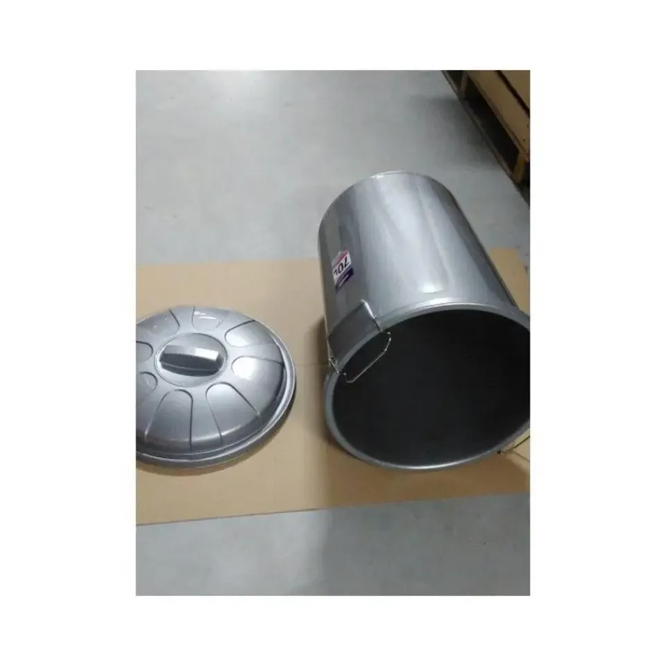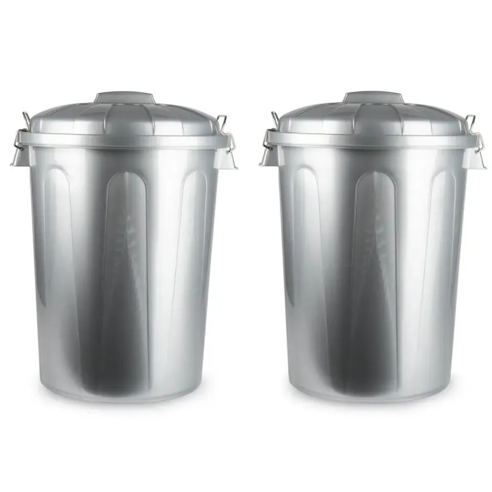 Afvalemmers/vuilnisemmers in de kleur zilver van 70 liter met deksel. Materiaal: kunststof. Afmetingen: ca. 47,5 x 52 x 67 cm. Ideaal voor in de keuken, slaapkamer of op kantoor.