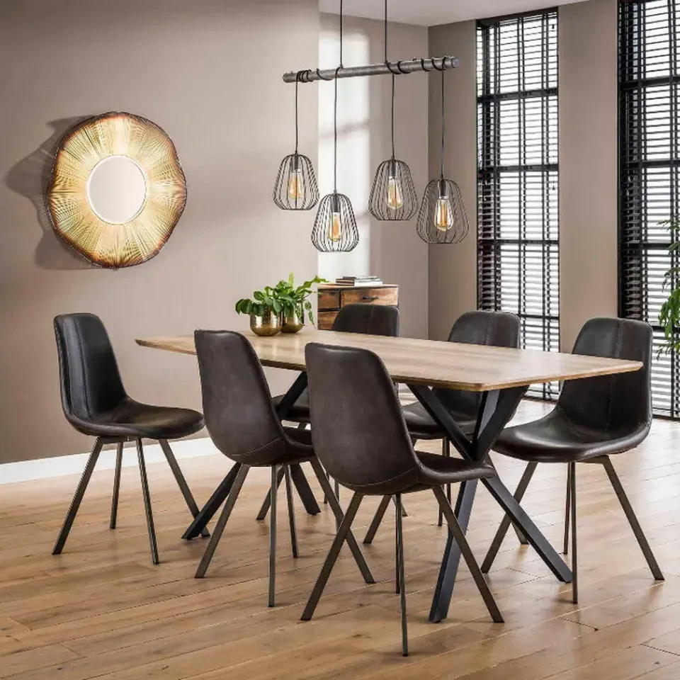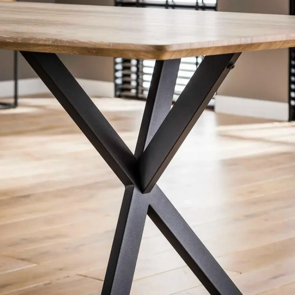 De eettafel, een tafel uit duizenden, is een functioneel en stijlvol meubel. Het blad van de Hemlock eettafel is uitgevoerd in MDF met een eiken decor en heeft een schuine rand zodat deze optisch dunner lijkt. De poten zorgen bij dit model voor een stoere finishing touch en zijn gemaakt van zwart gepoedercoat staal. De eettafel is hierdoor ook heel goed met een industrieel interieur te combineren. Deze eettafel is onderdeel van een serie bestaande uit verschillende soorten salontafels, eetkamertafels en bartafels.