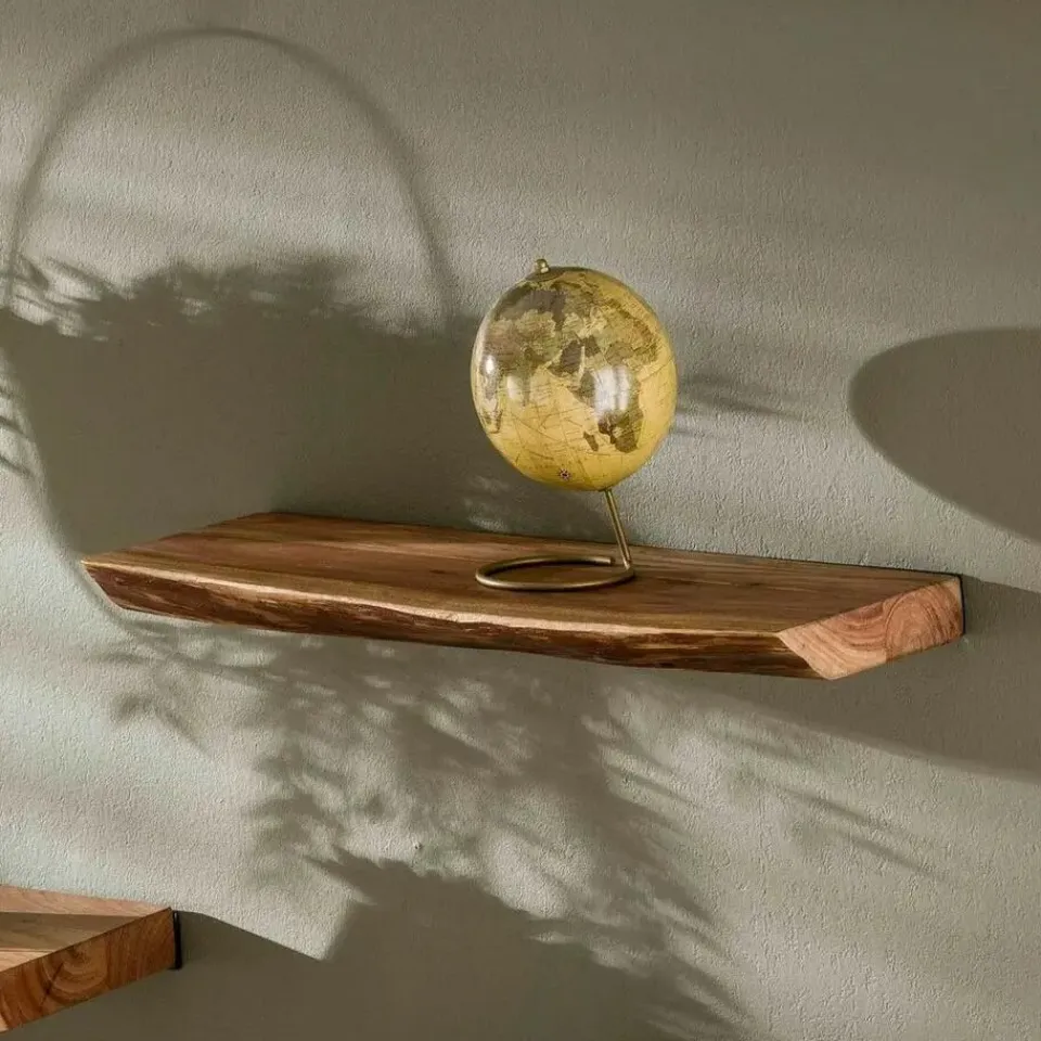 Wandplank Edwin is onmisbaar als u die lege muur een gezellige en warme uitstraling wilt geven. Deze wandplank heeft een breedte van 60 cm en is uitgevoerd in massief acaciahout met een blanke lak als afwerking. Dankzij zijn ontwerp met de uitstraling van een boomstam, zorgt deze plank gemakkelijk voor een natuurlijke en stoere sfeer in uw favoriete ruimte. Door middel van een blinde schapdrager, is dit wandschap gemakkelijk aan de muur te bevestigen. Hang deze wandplank in de woonkamer, slaapkamer, hal of werkkamer en decoreer hem met beeldjes, plantjes of vaasjes voor een persoonlijke finishing touch. Combineer wandplank Edwin ook met de andere twee formaten: 90 cm en 120 cm, voor een speels effect.