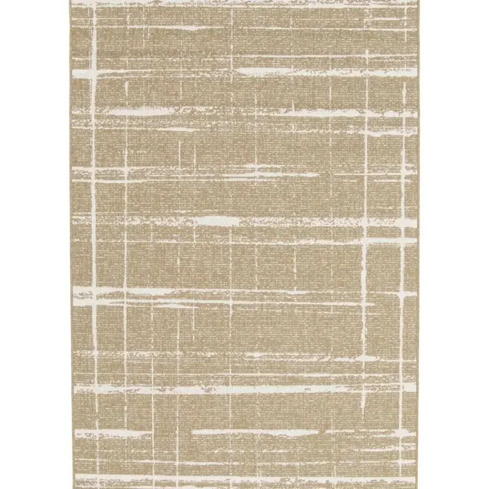 Het buitenkleed is gemaakt van polypropyleen. Polypropyleen is een hoogwaardige kwaliteit kunststof en kan daarom goed buiten blijven liggen. Het buitenkleed kun je het beste schoon houden door het regelmatig te stofzuigen. Als er een vlek in het vloerkleed komt, dan is het verstandig om deze vlek met een vochtige doek te behandelen. Daarnaast is dit buitenkleed ook bestendig tegen hitte en vuur. Het buitenkleed heeft een speels blokkering motief in de kleur desert sand. Het buitenkleed is gewoven met verschillende zand kleuren.