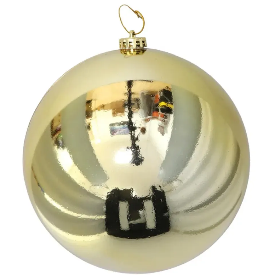 Grote decoratie kerstbal in de kleur goud. Met een diameter van 20 cm en een glimmende afwerking is deze kunststof kerstbal een opvallende toevoeging aan je kerstversiering. De heldere glans en royale grootte maken deze kerstbal een echte blikvanger. Hang hem prominent in de kerstboom voor een luxueuze uitstraling of gebruik hem als decoratief accent aan het plafond, bij het raam etc. Deze grote decoratie kerstbal voegt een vleugje elegantie en glamour toe.