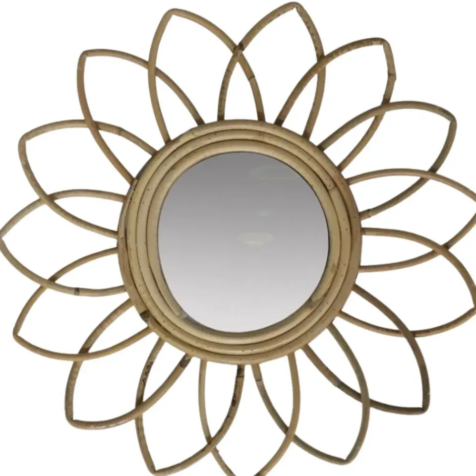 Rotan spiegel natuurlijk van Gerimport. Breng een vleugje zon en warmte in je interieur met de Rotanspiegel Sun. Deze prachtige spiegel van 35×4 cm is gemaakt van natuurlijk rotan en heeft een uniek, zonvormig design dat perfect past in een bohemian of Scandinavisch interieur. Hang de spiegel in je woonkamer, slaapkamer of hal en creeer direct een gezellige en natuurlijke sfeer. Het compacte formaat maakt het ideaal om te combineren met andere wanddecoraties of als blikvanger op zichzelf.