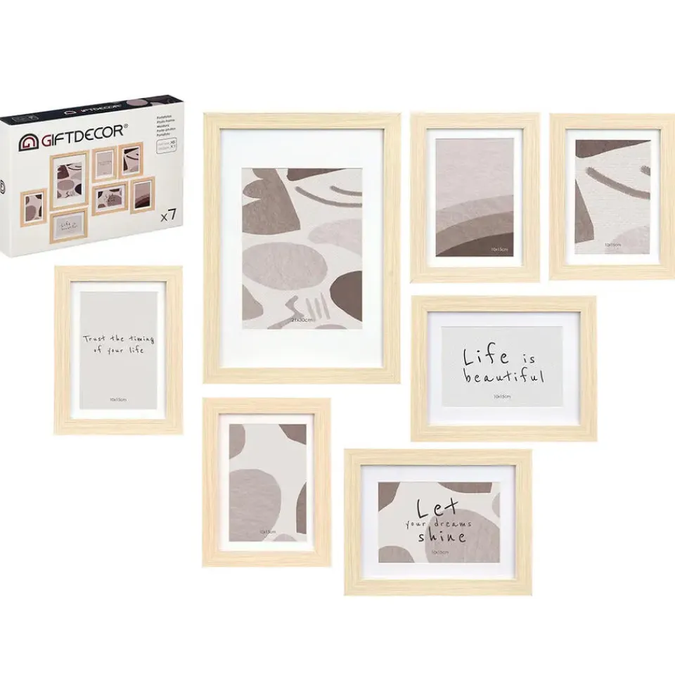 Collage fotolijst – 7 foto’s – Naturel hout – Gift Decor