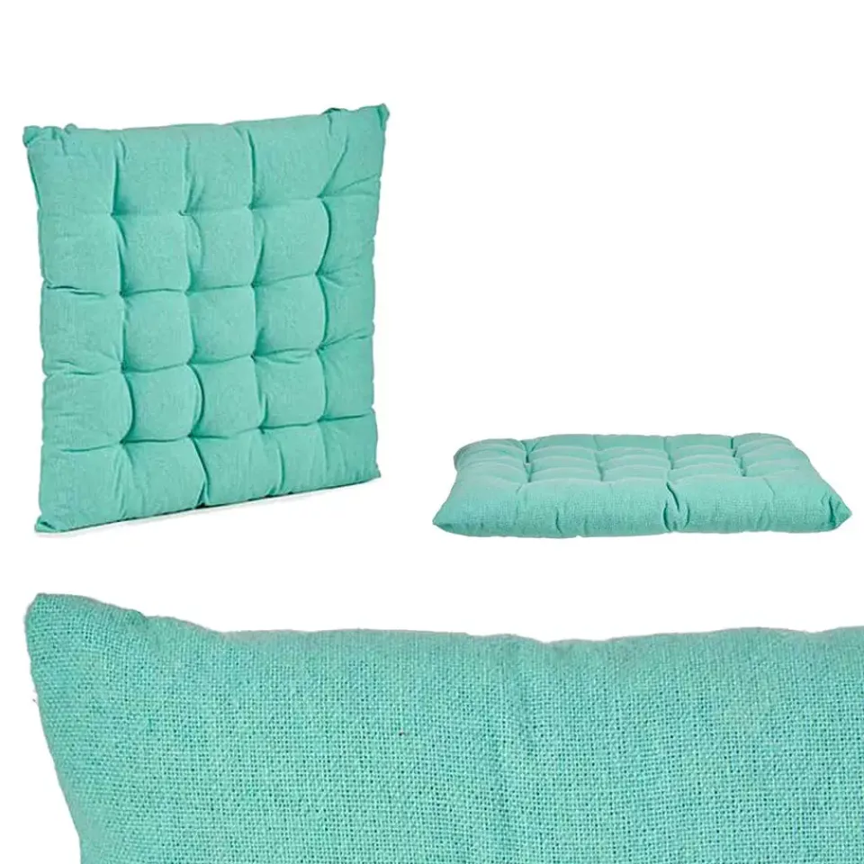 Stoelkussen Decorama, plat, dun, voor binnen- en/of buitenstoel in de kleur mintgroen met afmetingen 40 x 40 x 5 cm. Deze kussens zijn water bestendig en hebben twee touwtjes om de kussen vast te maken aan de stoel. Materiaal: 100% polyester. Wasbaar: ja, de hoes is wasbaar op 30 graden. Buitenkussens voor bij uw tuinstel/banken, of gewoon binnen gebruiken om wat zachter te zitten. Diverse mooie luxe kleuren voor een topprijs. Kussens voor op stoelen.