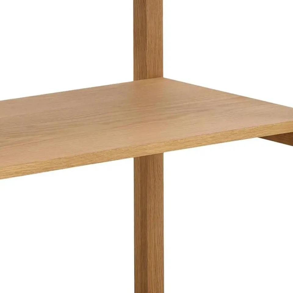 Materiaal: De Mista boekenkast is vervaardigd uit MDF, een veelzijdig en stevig materiaal dat vaak gebruikt wordt in meubelproductie. MDF biedt een glad oppervlak dat ideaal is voor fineerafwerkingen, zoals het eikenfineer dat deze kast zijn natuurlijke uitstraling geeft. Dit materiaal zorgt voor een duurzame en onderhoudsvriendelijke kast.