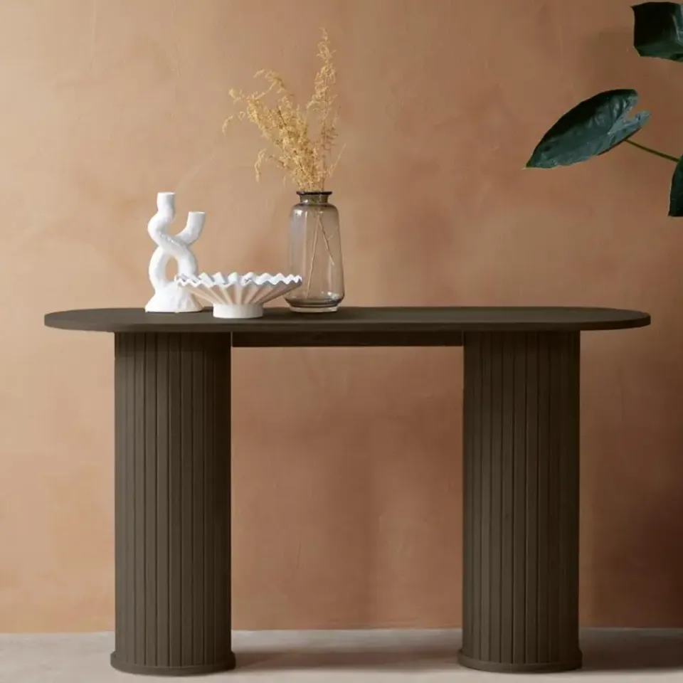 De Sidetable Nola Smoked van Giga Living is een prachtige toevoeging aan je interieur. Deze landelijke sidetable is vervaardigd uit hoogwaardig eikenhout en afgewerkt in een stijlvolle smoke kleur. Het ovale ontwerp en de bruine tint van het tafelblad geven het meubelstuk een warme en uitnodigende uitstraling. De Nola sidetable is perfect voor in de hal of woonkamer en biedt een elegante plek om decoraties of persoonlijke items tentoon te stellen. Dankzij de stevige constructie van eikenhout is deze sidetable duurzaam en van uitstekende kwaliteit.