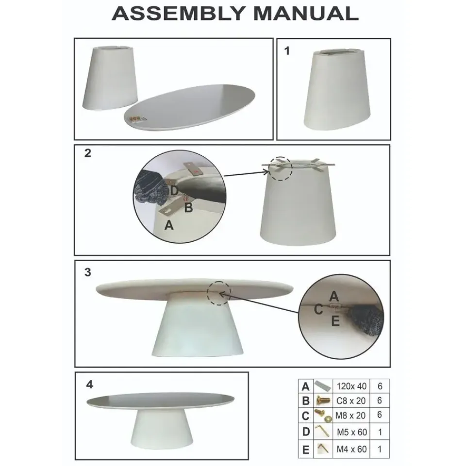 - Ovaal design optimaliseert de ruimte en bevordert de conversatie.