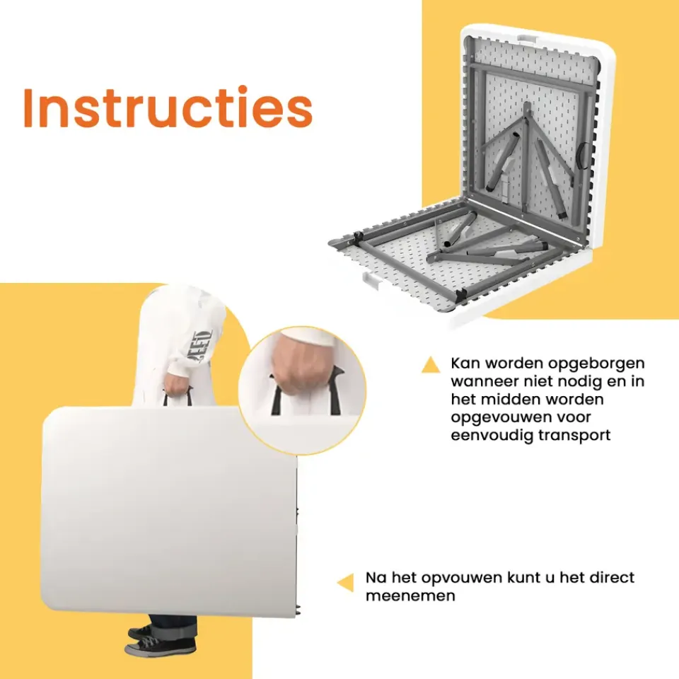 - Makkelijk mee te nemen – Dankzij het geïntegreerde handvat is de klaptafel zeer gemakkelijk met je mee te nemen!