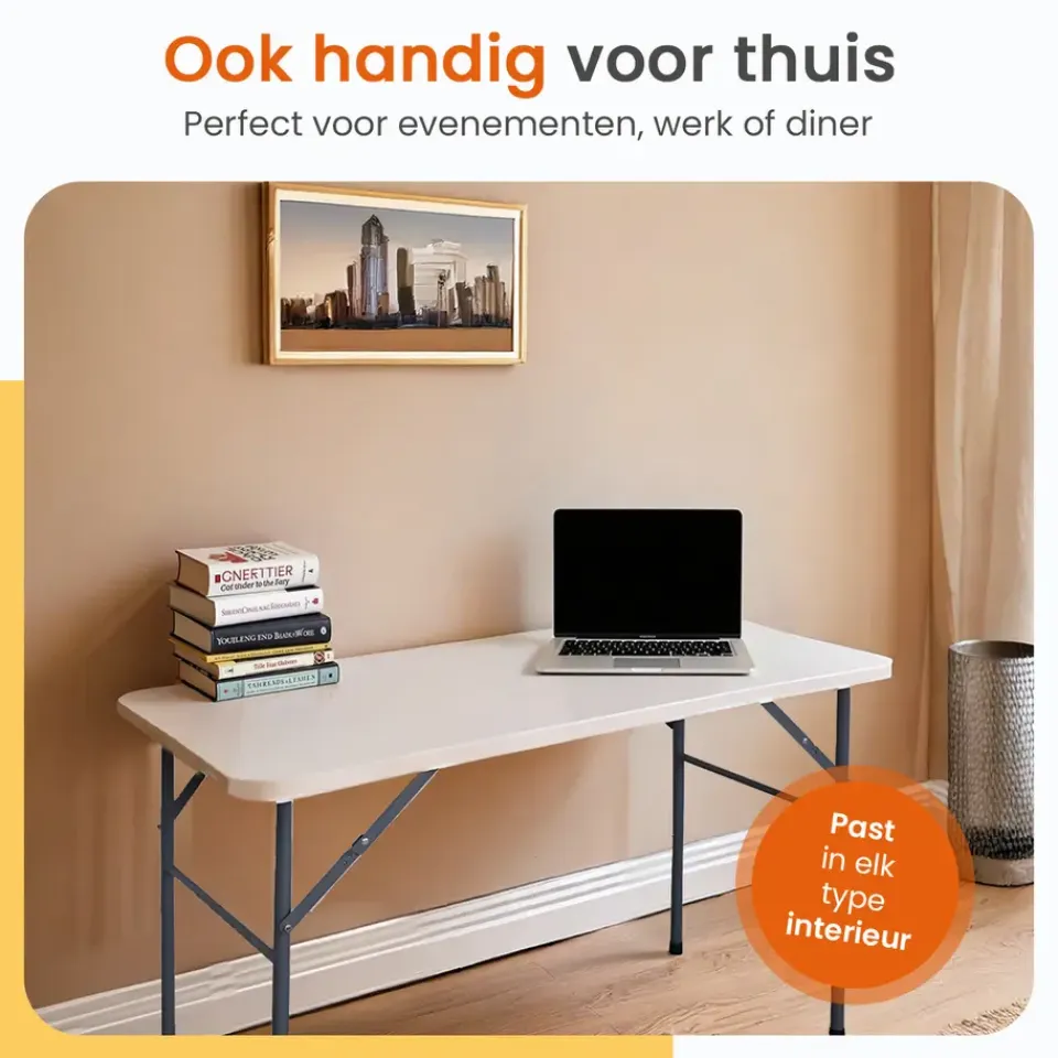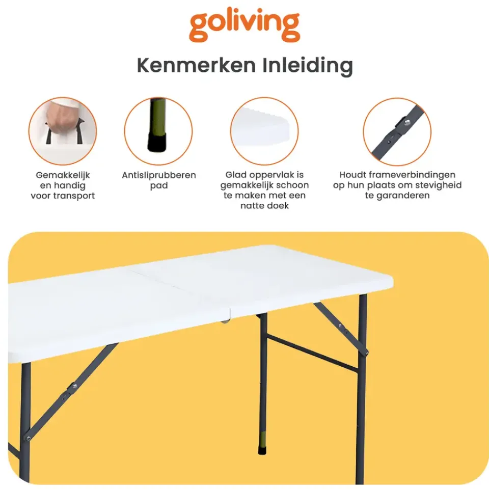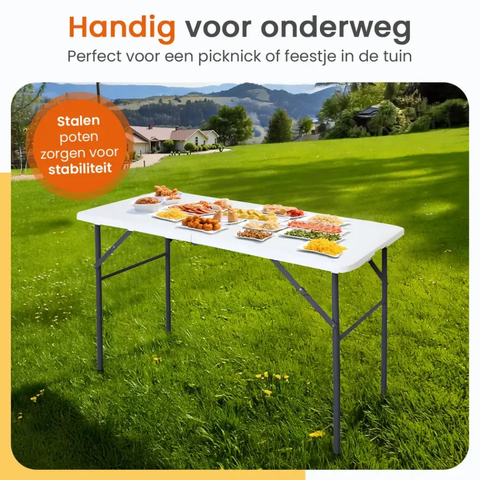 De klaptafel is ideaal voor verschillende gelegenheden, zoals feesten, verjaardagen, BBQ’s en andere bijeenkomsten. Daarnaast kun je de klaptafel ook goed op de camping gebruiken. Met zijn breedte van 60 cm en lengte van 122 cm is er genoeg ruimte!