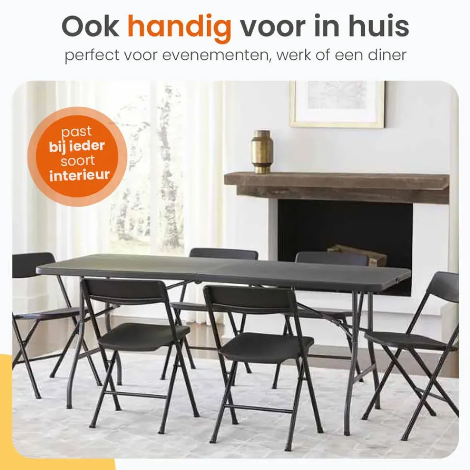 Camping, balkon, tuinfeest, barbecue, markt, verjaardag, hobbykamer — dankzij het inklapbare systeem en het lichte gewicht neem je deze tafel overal mee naartoe zonder gedoe.