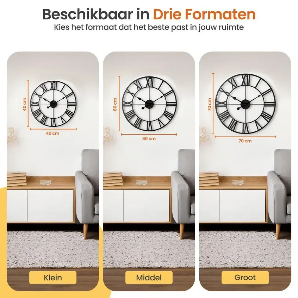 Het open stalen frame maakt de klok subtiel maar krachtig aanwezig in het interieur. Deze wandklok zwart sluit perfect aan bij een industriële of moderne inrichting en vormt een echte blikvanger in woonkamer, keuken, hal of kantoor.
