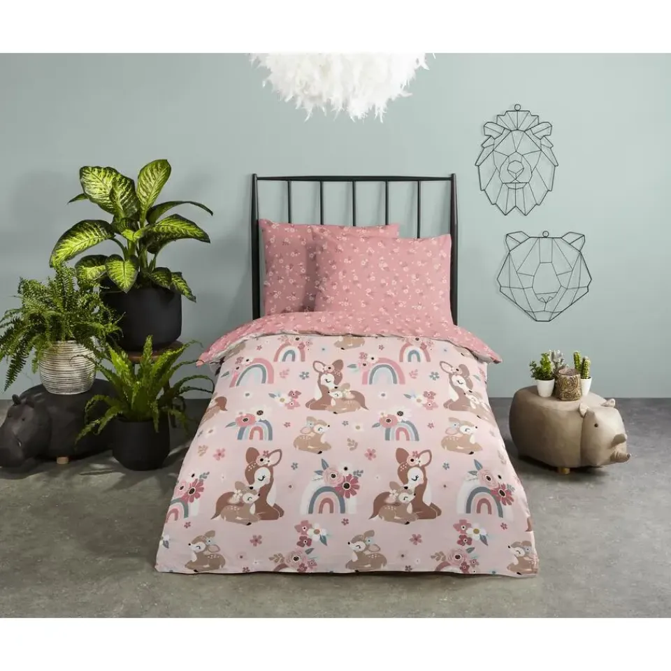 Ledikant baby dekbedovertrek van Good Morning met bambi hert, in de kleur roze, is gemaakt van 100% katoen. Deze kwaliteit is ademend, vochtabsorberend en voelt zacht en soepel aan. Dit leuke ledikant baby dekbedovertrek is een mooie toevoeging aan iedere kinderkamer. Het ledikant baby dekbedovertrek is geschikt voor ieder jaargetijde. Het katoenen 100% katoen is heerlijk koel in de zomer en geeft warmte in de winter.