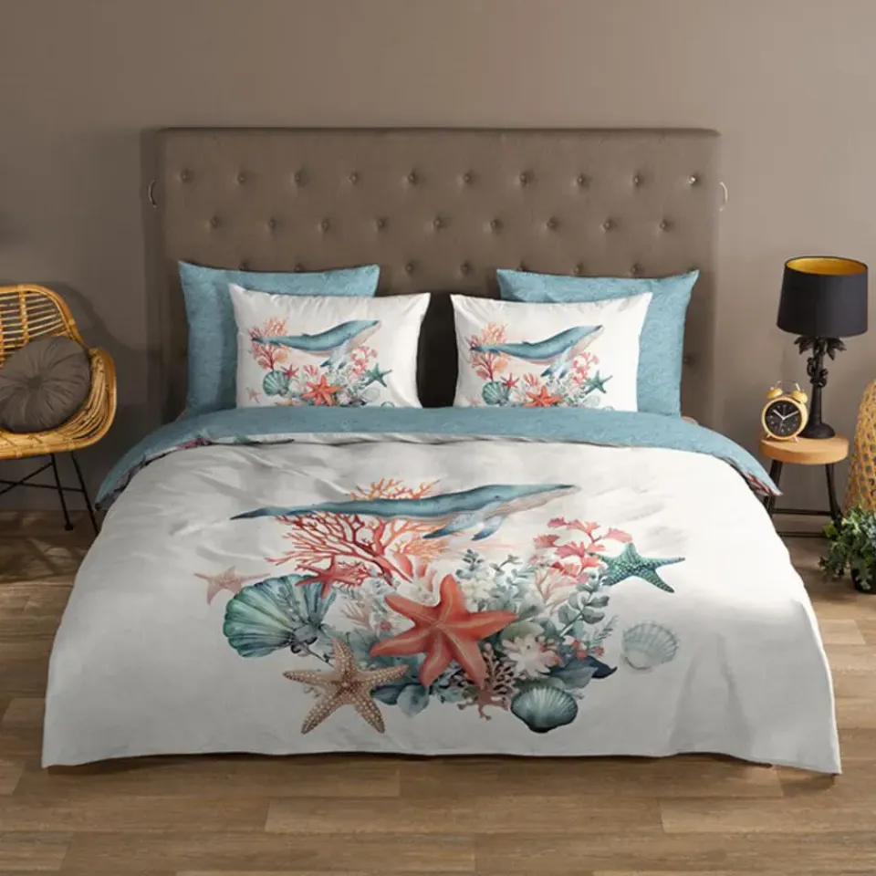 Dekbedovertrek Ocean van Good Morning met maritiem/ zee thema, in de kleur ecru. Dit is gemaakt van 100% katoen. De kwaliteit is ademend, vochtabsorberend en voelt zacht en soepel aan. Dit mooie dekbedovertrek fleurt iedere slaapkamer op en is geschikt voor elk jaargetijde. Het katoenen dekbedovertrek is heerlijk koel in de zomer en geeft warmte in de winter.