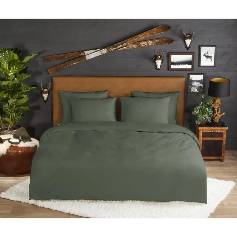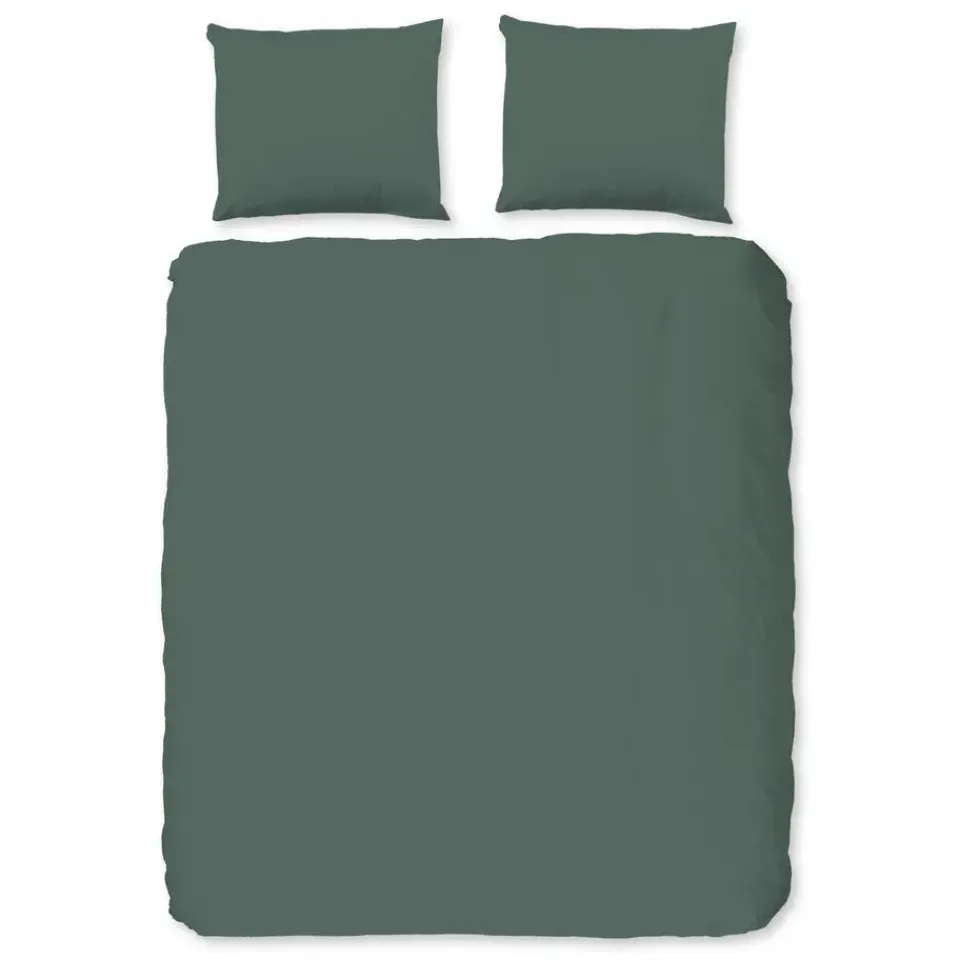 Flanellen dekbedovertrek Uni van Good Morning, in de kleur olijfgroen, met een print van Effen kleur. Het dekbedovertrek is gemaakt van 100% katoen/flanel dat is licht geruwd, waardoor een fluweelzacht laagje ontstaat dat heerlijk warm aanvoelt -perfect voor koude nachten.