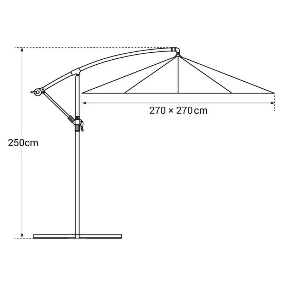 – Parasol: L 2.7 × B 2.7 × H 2.5m