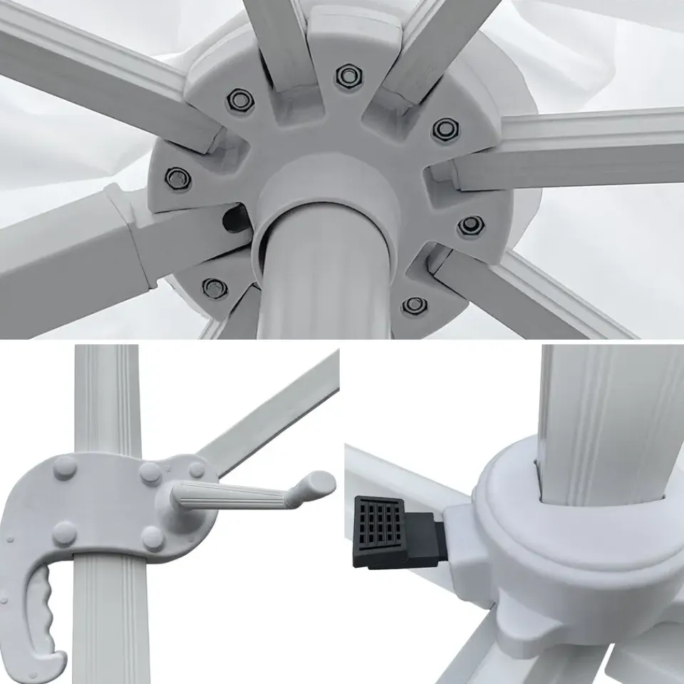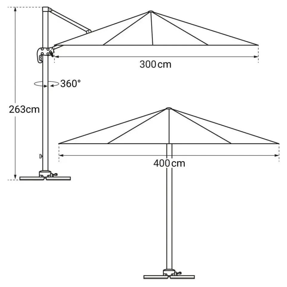 Is het mooie weer terug? Bescherm uzelf tegen de zon dankzij uw MOLOKAI parasol: de grote overspanning en het ondoorzichtige polyester doek maken van deze parasol uw beste bondgenoot om de zomer door te brengen. De aluminiumstructuur met epoxyverf en het waterafstotende doek zorgen ervoor dat de parasol bestand is tegen de buitenomstandigheden. Naast een zeer modern design dankzij de kleuren en de rechthoekige vorm, is uw parasol zeer praktisch: hij kan gekanteld en 360° gedraaid worden. Deze excentrische parasol zal perfect zijn om een grote tuintafel in de schaduw te zetten. Zorg ervoor dat hij op de grond blijft staan met onze op te vullen ballastplaten, ook verkrijgbaar bij Happy Garden.