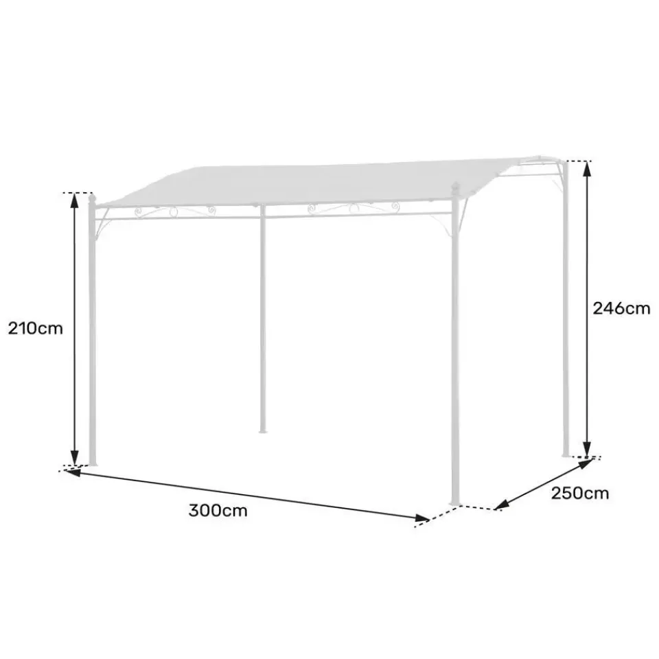 – Pergola: L 300 × B 250 × H zijdelings max 246cm / min 210cm