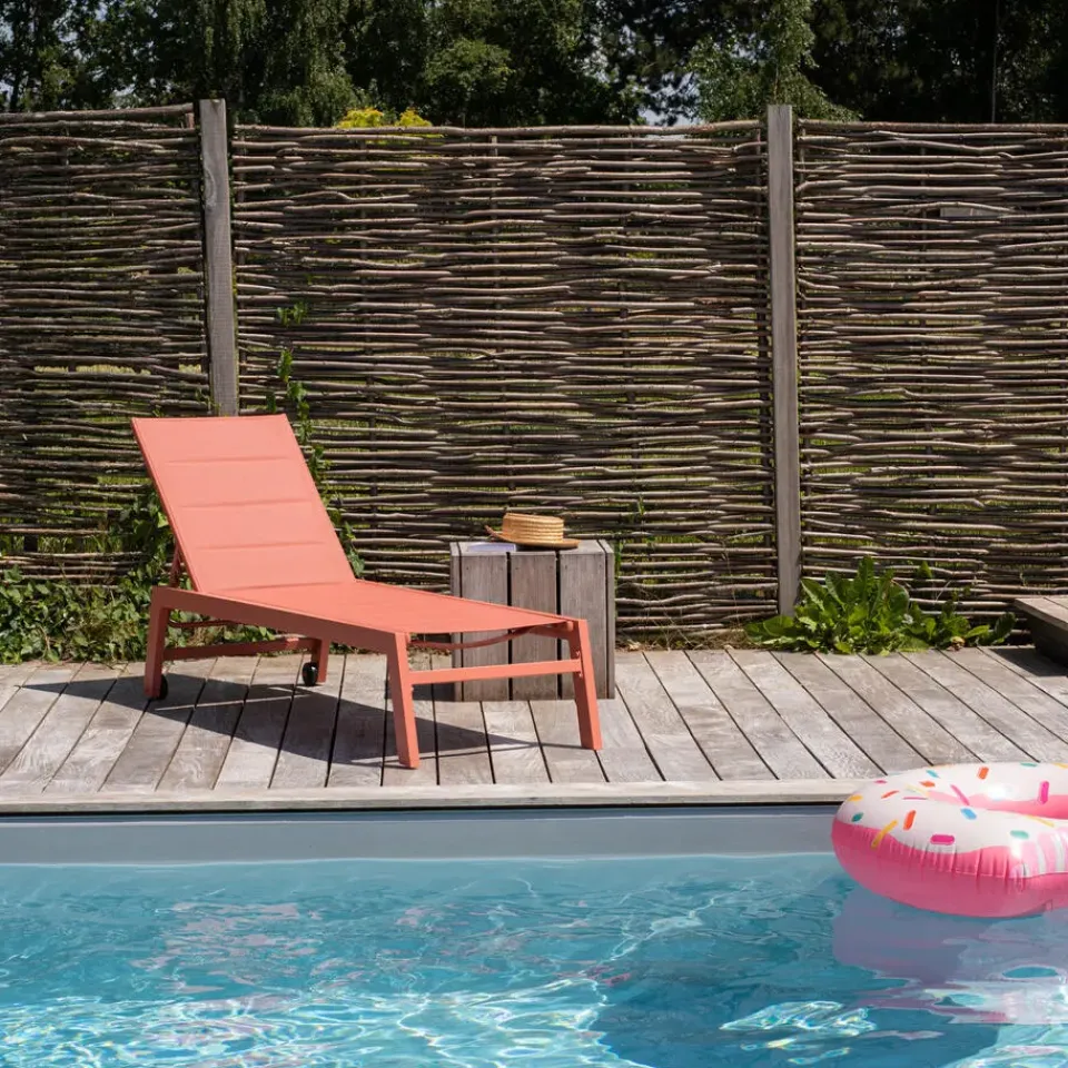 Het is heerlijk om te ontspannen in de zon of in de schaduw van een parasol wanneer de zomermaanden aanbreken. Het is nog beter wanneer u beschikt over een Textilene ligstoel die u gemakkelijk kunt verplaatsen van het terras naar de tuin en tot aan de rand van het zwembad. Zo kunt u genieten van uw momenten van ontspanning, zittend of liggend in deze aluminium ligstoel die bestand is tegen de UV-stralen van de zon. Een uitkomst als u hem op een regenachtige dag bent vergeten af te dekken! De rugleuning van deze ligstoel, verkrijgbaar in blauw en wit, kan op 5 verschillende niveaus worden ingesteld, zodat u de meest comfortabele positie kunt vinden.