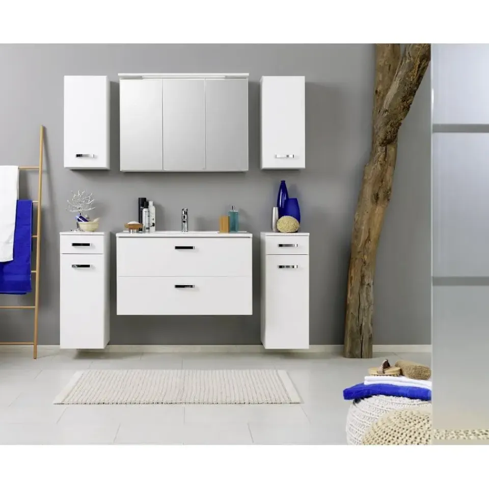 Badkamerkastje Bobbi is gemaakt van melamineerde spaanplaat. De fronten van de deur en de lade zijn gemaakt van MDF en zijn afgewerkt in hoogglans wit.