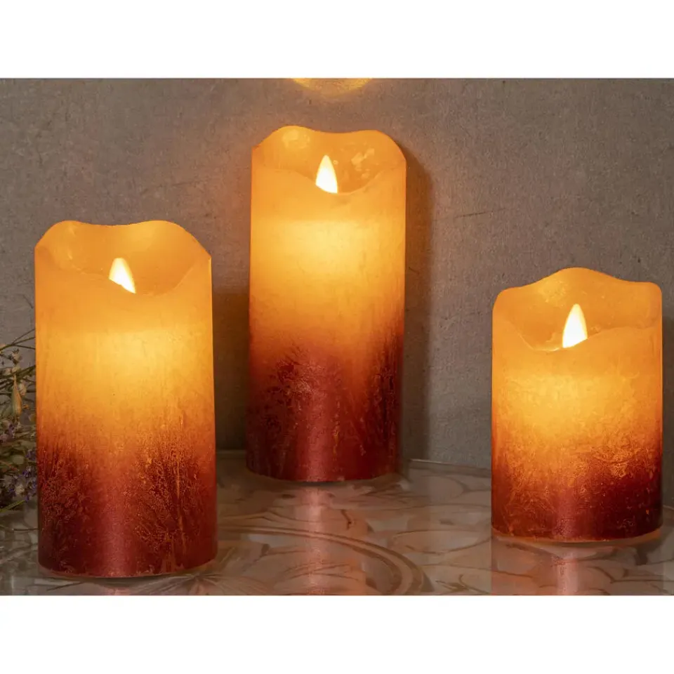 LED kaarsenset van 3x stuks LED kaarsen. Deze set bestaat uit 3x stuks roze kaarsen die aan de onderkant een mooie metallic afwerking hebben. De kaarsen zijn gemaakt van kunststof materiaal. Ze zijn veilig om te gebruiken, omdat ze geen vlammen of rook produceren. Deze elektronische LED kaarsen zijn ideaal voor gebruik in huis. op feestjes of andere speciale gelegenheden. Formaat kaarsen: D8 x H11 cm, D8 x H14,2 cm en D8 x H16,7 cm. Voeding per kaars: 2 AA batterijen (niet inbegrepen). Met 6 en 8 uur timer functie.