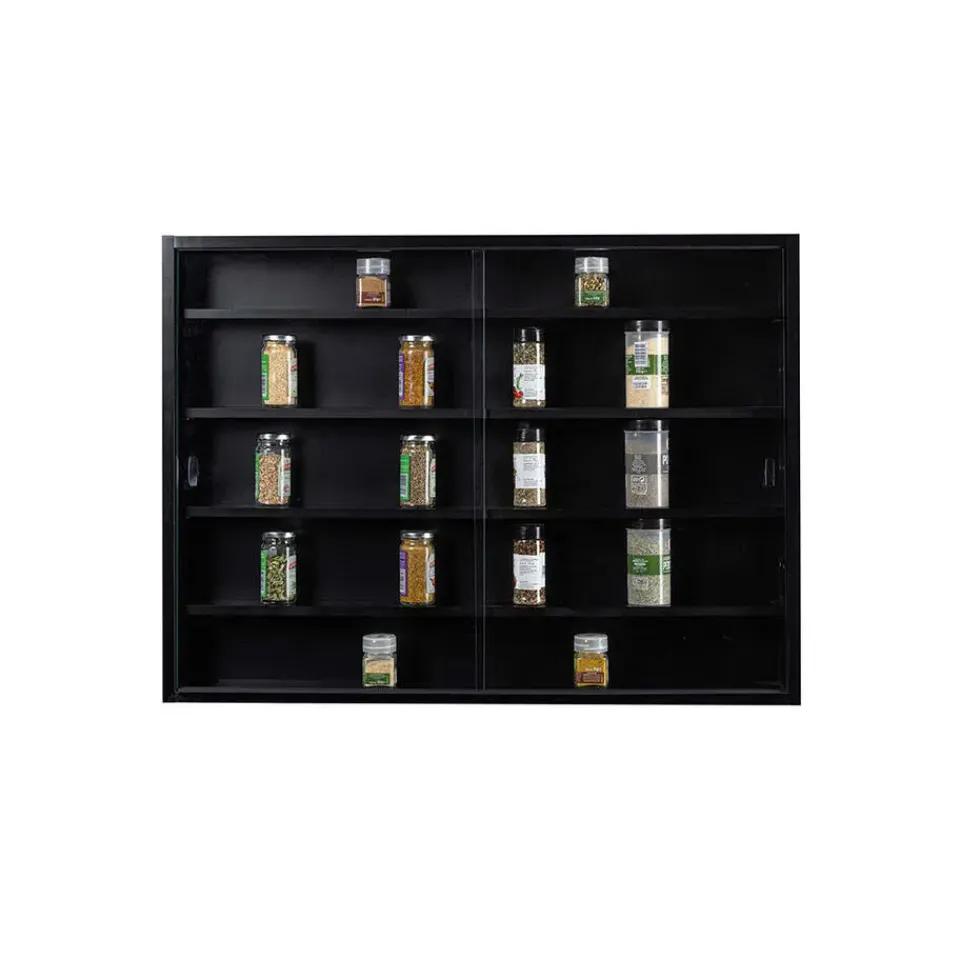 Blacklava vitrinekast, 2 schuifdeuren zwart. De Blacklava vitrinekast is een elegante en moderne opbergoplossing die functionaliteit en stijl combineert. De kast is voorzien van twee glazen schuifdeuren die een exclusieve indruk geven en het gemakkelijk maken om je favoriete spullen, zoals boeken, serviesgoed of decoraties, tentoon te stellen. Het zwarte frame voegt een minimalistische en verfijnde look toe die perfect past in moderne interieurs. De vitrinekast is ideaal voor zowel de woonkamer, eetkamer of kantoor en zorgt ervoor dat je spullen veilig opgeborgen staan en ze op een stijlvolle manier presenteren.