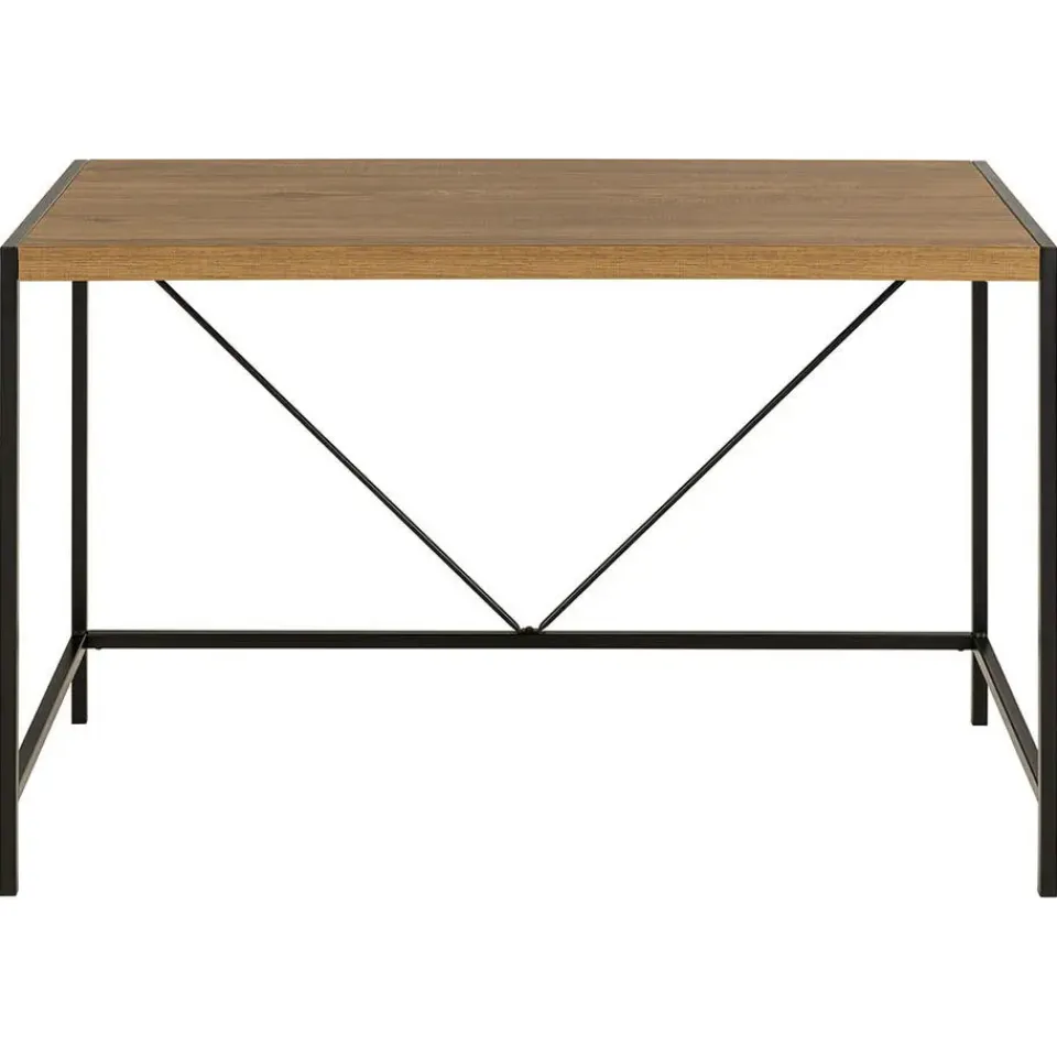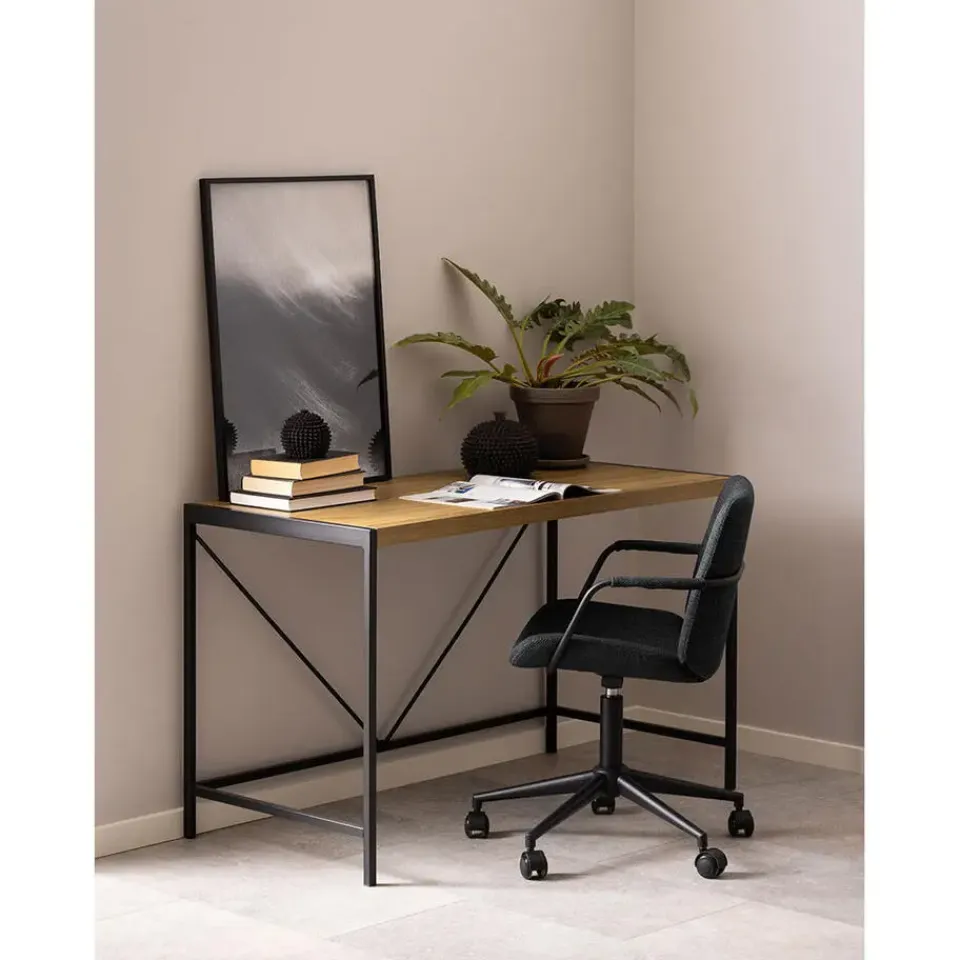 Het Bahamas bureau combineert een eenvoudig en functioneel ontwerp met een warme, natuurlijke houten afwerking. De robuuste tafel heeft een stijlvol metalen frame in de kleur zwart, wat een modern contrast creëert met het naturel houten tafelblad. Met zijn open en luchtige structuur geeft dit bureau een minimalistische uitstraling die perfect past in zowel het thuiskantoor als de studeerkamer. Het biedt een goed werkoppervlak en voldoende opbergruimte voor gereedschap en decoraties, waardoor het een ideale keuze is voor mensen die waarde hechten aan zowel esthetiek als functionaliteit.