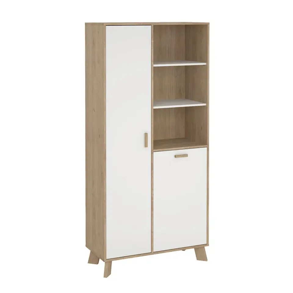 Ikast vitrinekast 2 deuren, 3 planken eiken decor, wit. De Ikast vitrinekast is een elegante en functionele opbergoplossing die open opbergers combineert met gesloten elementen. De kast is ontworpen met 2 deuren en 3 planken, waardoor hij ideaal is voor het tentoonstellen van je favoriete spullen of het opbergen van spullen die je wilt verstoppen. Het warme eiken decor en de stijlvolle wit gelakte deuren geven een tijdloze en minimalistische uitstraling die perfect past in moderne woningen. Door het compacte formaat is de kast geschikt voor zowel de woonkamer, het kantoor als de entree, terwijl de praktische opbergmogelijkheden ervoor zorgen dat je huis georganiseerd blijft.