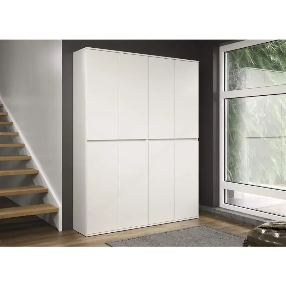 Nevada kledingkast 8 deuren wit is een kledingkast in de kleur Wit die zowel stijl als functionaliteit in je huis brengt. Nevada kledingkast 8 deuren wit. B/H/D Kast 155: 74 / 191 / 34 cm. Zonder licht. Dit product is gemaakt met oog voor detail, wat zowel esthetische aantrekkingskracht als hoge duurzaamheid garandeert. Het is ontworpen met zowel functionaliteit als stijl in gedachten, waardoor het de perfecte keuze is voor elke kamer in uw huis. De gebruikte materialen zijn van hoge kwaliteit, waardoor het product een lange levensduur heeft en bestand is tegen dagelijks gebruik. Of het nu voor opslag is of als decoratieve toevoeging, dit product zal uw interieur naar een hoger niveau tillen en extra comfort en elegantie in uw huis brengen.
