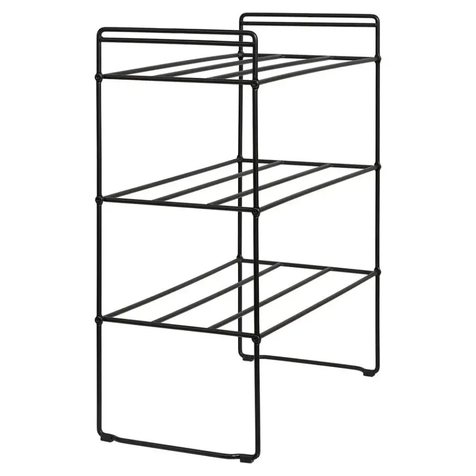 Deze stijlvolle en functionele plank is gemaakt van stevig metaal en heeft een modern, minimalistisch design. Met drie open planken is hij ideaal voor het opbergen van boeken, decoraties of opbergdozen. De zwarte afwerking geeft een verfijnde uitstraling en maakt de plank tot een praktisch opberg- en decoratief meubelstuk dat past in zowel moderne als industriële interieurs. Door de lichtgewicht constructie is hij gemakkelijk te plaatsen en te verplaatsen in huis.